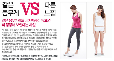 같은 몸무게인데 달라보이는 이유는 몸 지방이 많은가 근육이 많은가에 있기때문에 체지방을 없애는 것이 다이어트의 첫걸음이라 할수있습니다. 지방의 무게를 근육의 무게로 만들어야 한다는 거죠..