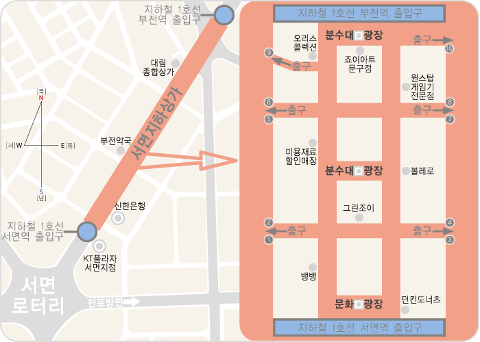 [1] 서면지하상가 (휴식공간과 할인판매가게)