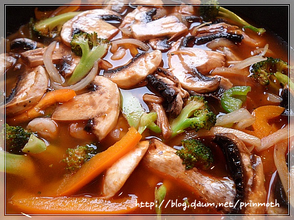 마지막에 버섯 넣으셔요~~송이버섯은 생으로도 먹을수 있는지라