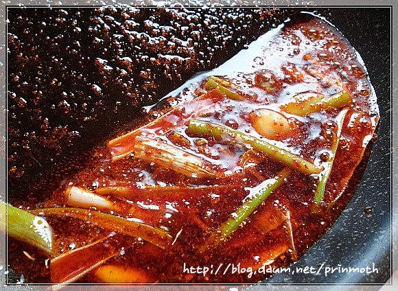올리브오일 반컵에 고춧가루 2~3스픈, 편으로 자른 마늘 두개,파 한뿌리,생강 쬐끔을 넣고 약불에서 서서히