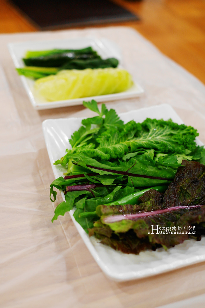 우선 쌈 채소 몇 가지가 식탁에 놓여지고