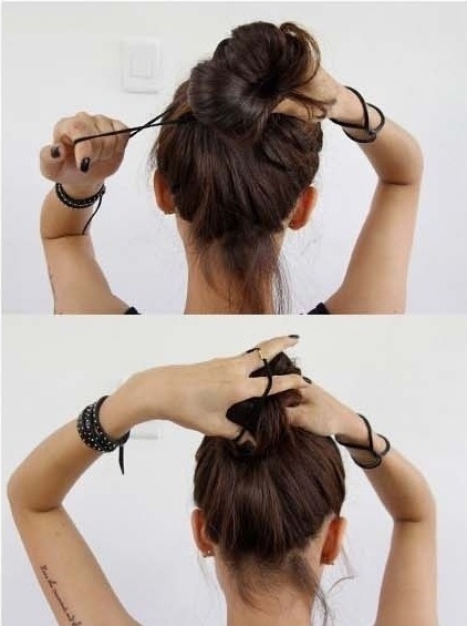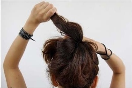 5. 머리를 위로 올린다음 돌려서 말아줍니다