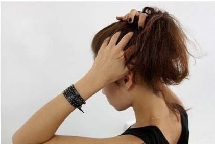 2) 그리고 늘어뜨린 머리를 하나로 돌려서 말아주세요