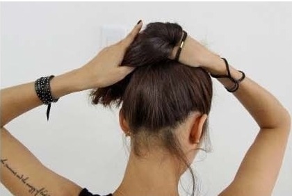 1) 먼저 머리카락을 머리 위로 길게 늘여뜨려 주세요