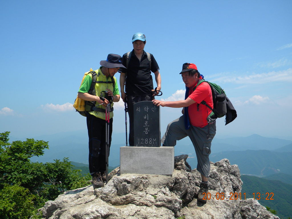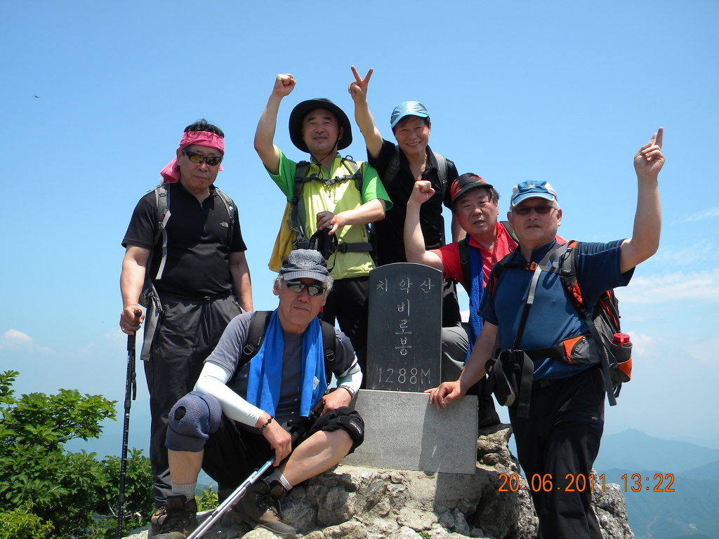 산행시작 7시간 만에 드디어 비로봉 정상 - 1288미터