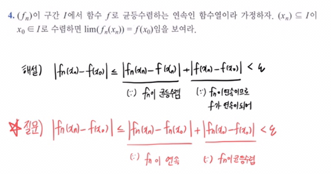 [해석학]균등수렴 하는 함수열 작성자만이할수있다|작성시간21.03.14|조회수193 목록 댓글 2 글자크기 작게가 글자크기 크게가 바틀 기본서 문제입니다 교수님삼각부등식을 다른방법으로 풀어서 생각해보았는데, 이렇게 풀어도 되는지 궁금합니다..두번째 사진에 자세한 풀이를 적어보았습니다..!감사합니다. 다음검색 현재 게시글 추가 기능 열기 북마크 공유하기 신고 센터로 신고 댓글 댓글 2 댓글쓰기 답글쓰기 댓글 리스트 작성자신선물고기 | 작성시간 21.03.16 좋습니다 답댓글 작성자만이할수있다 작성자 본인 여부 작성자 | 작성시간 21.03.16 감사합니다!!^^ 댓글 전체보기
