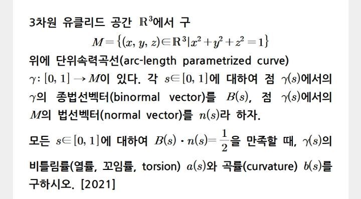 답댓글 작성자하유 작성자 본인 여부 작성자 작성시간 21.03.30 그러면 문제에서 n을 M의 법선벡터라고 말했기때문에 그래디언트로 이해하고 만약 감마의 법선벡터라고 말했다면 프레네틀장의 N으로 이해하면 되나요?