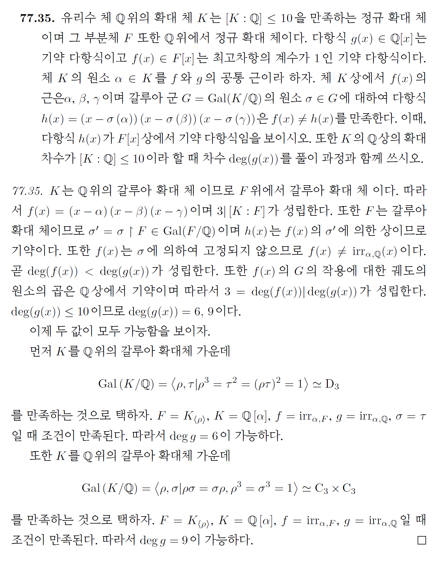 답댓글 작성자신선물고기 작성자 본인 여부 작성자 작성시간 22.03.14 공부합시다 갈루아 군이 계수에 작용하여 다항식 환에도 작용한다는 부분에 대한 개념은 일단 없으신 것 같네요.