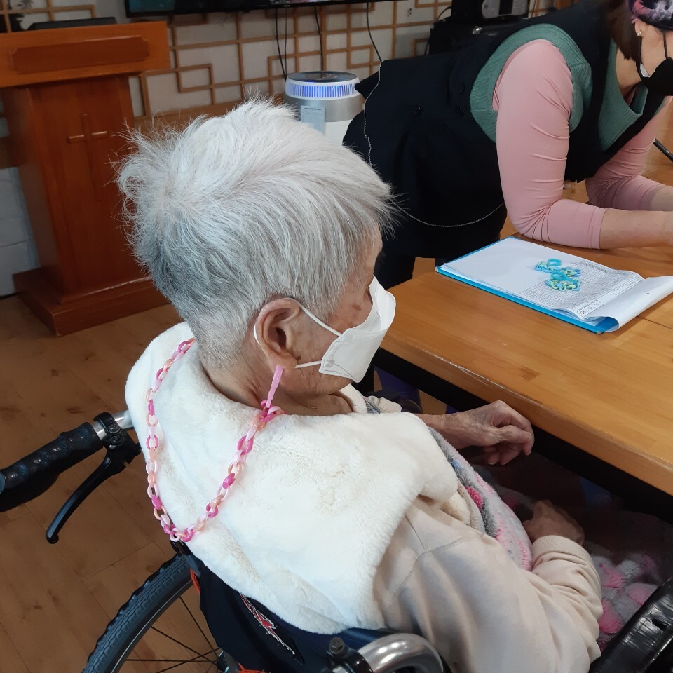 쨘~ 예쁜 마스크 줄 완성!! 어르신들이 예쁘다고 너무 좋아하셨어요~^^
