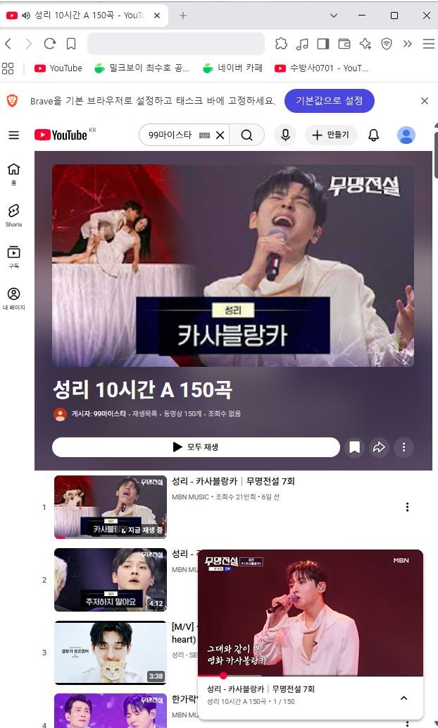 마우스 오른쪽 클릭해서 소형플레이어로 두시면 광고도 일시정지도 없습니다.