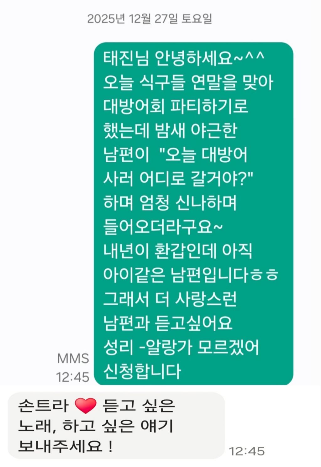 12월 27일에 보내주신 사연이