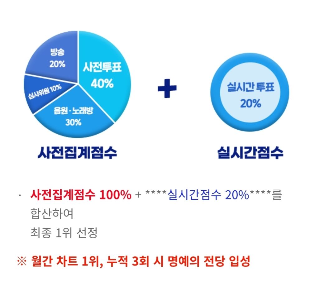 🥁 순위가 아니라 득표수가 점수화 됩니다. 앞순위를 따라잡을 수 없다하여 투표에 참여하지 않으면 안됩니다. 한표라도 꼭 행사해 주세요~^^