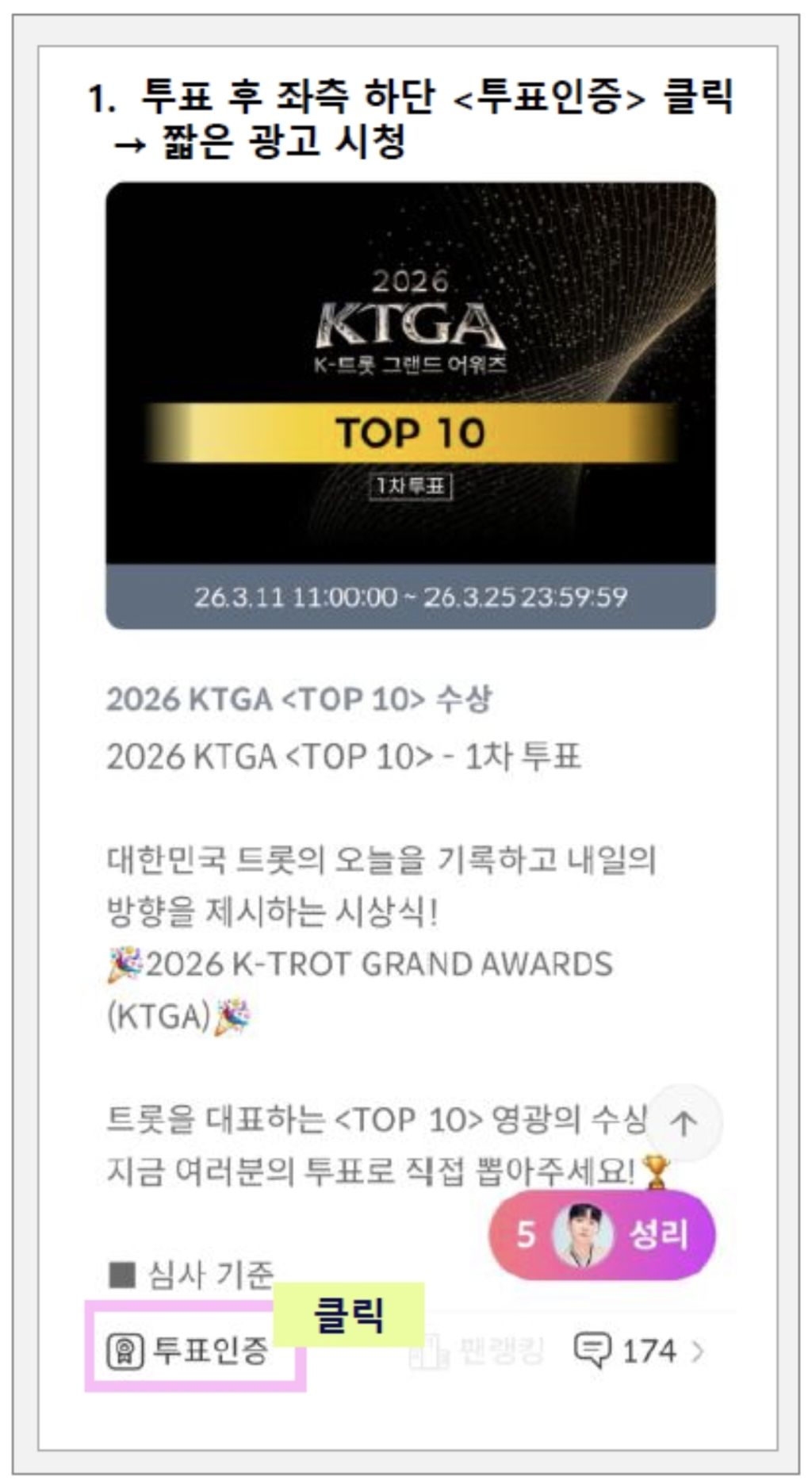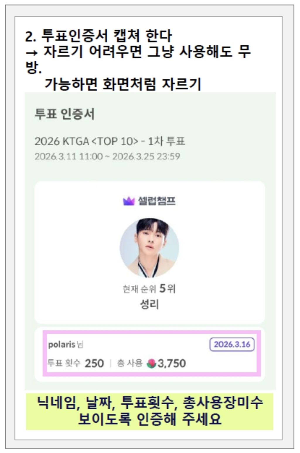 ○ 투표인증 방법<셀럽챔프>