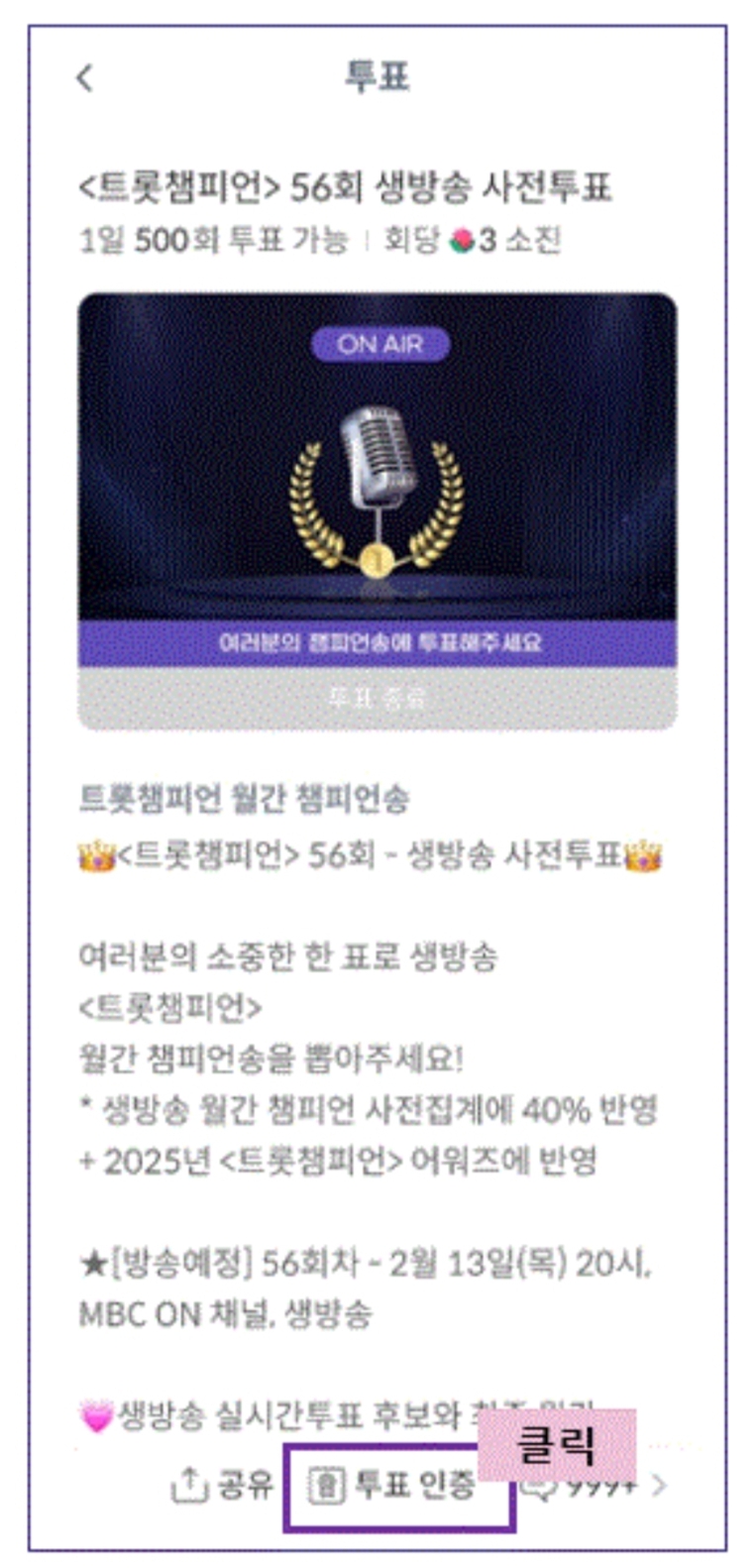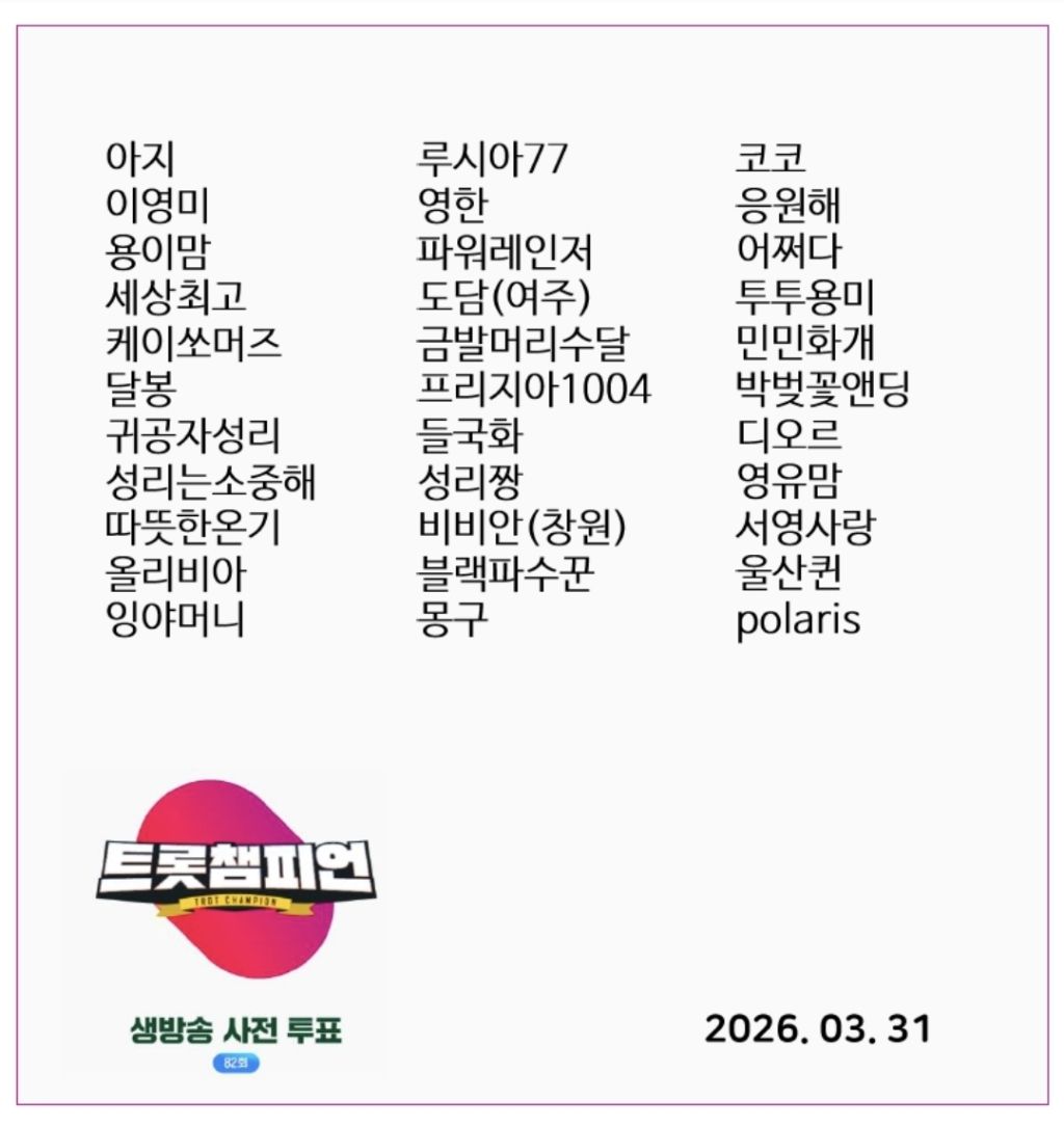 <트롯챔피언 82회 생방송 사전 투표> 마지막 7일차 입니다.