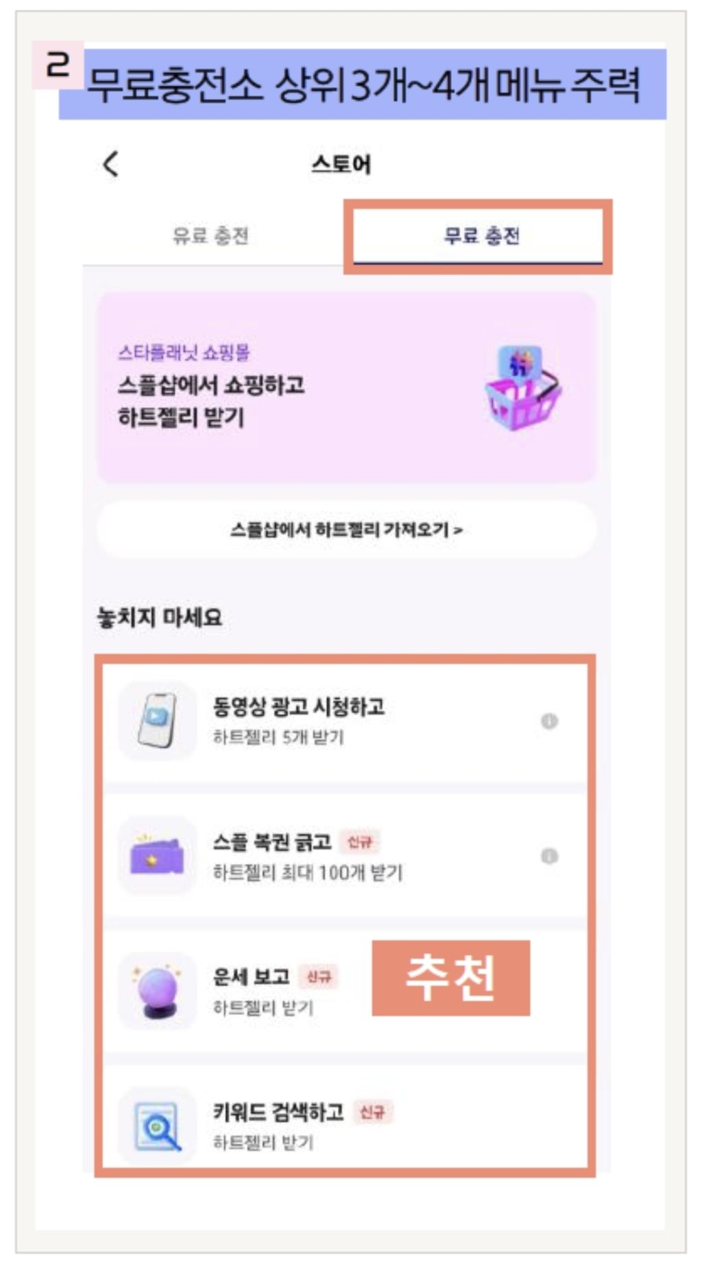 동영상광고 보기 50개, 스플복권으로 최대 100개, 운세보기도 놓치지 마세요~^^
