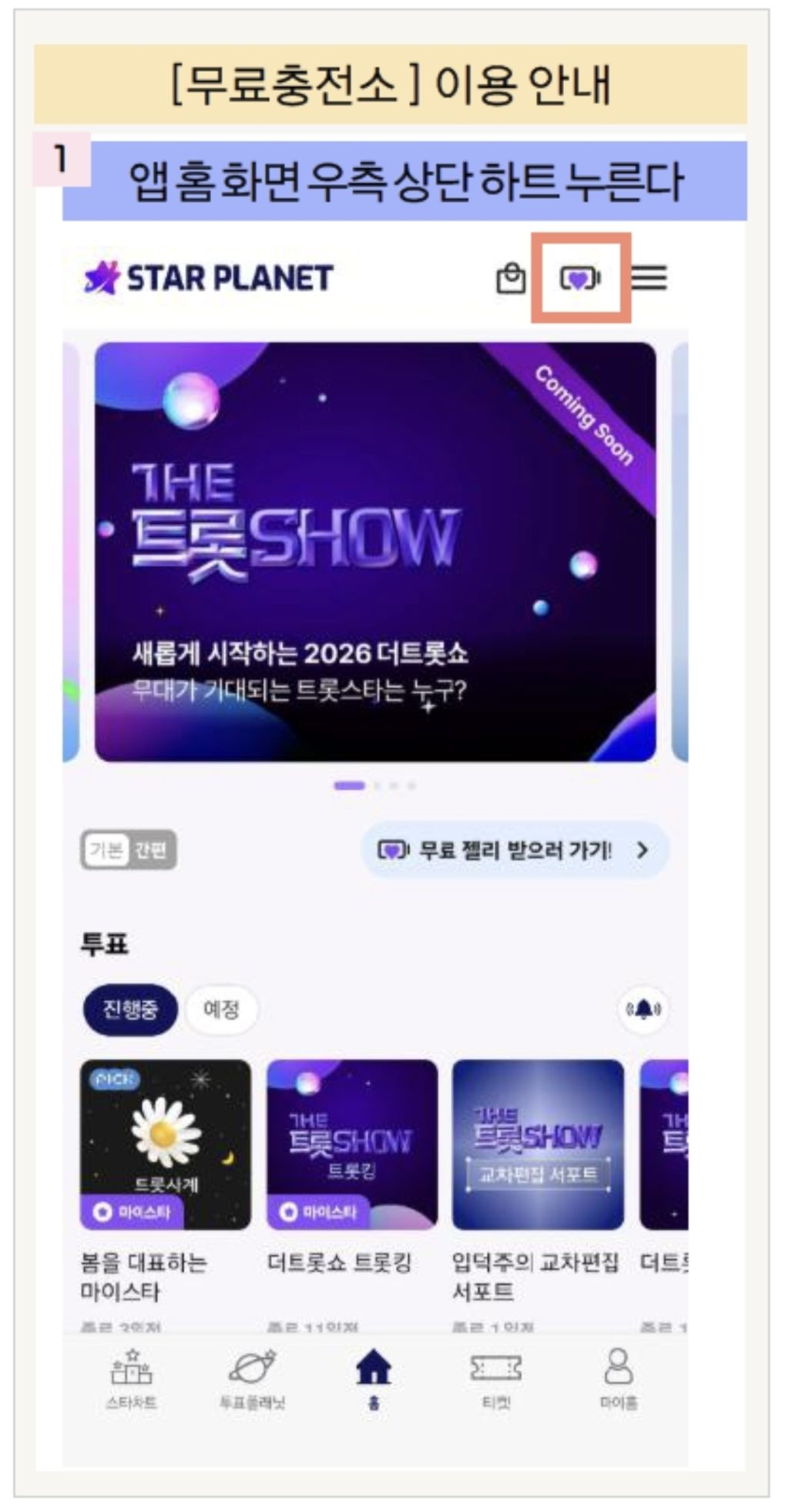 스타플래닛 담당이 공석이고 곧 재개될 SBS 더트롯쇼 사전투표를 위해 우선 안내드리오니 학자님들께서는 불편해 하지 마시고 참여부탁드립니다.