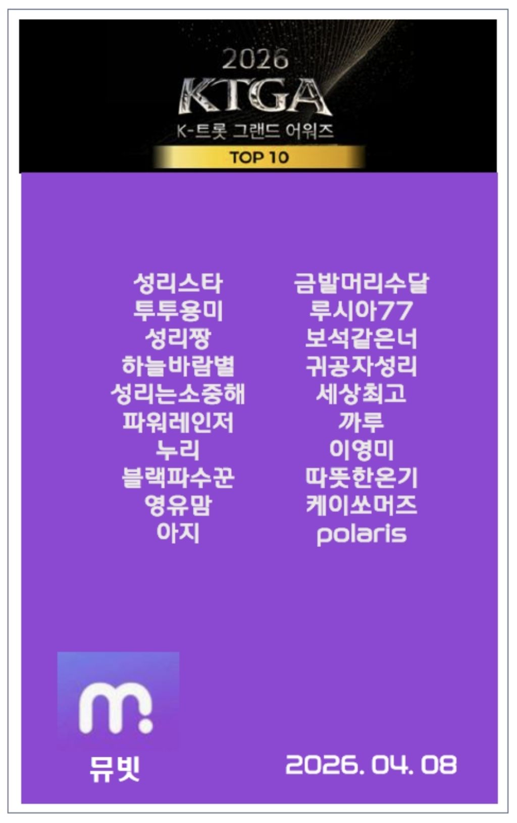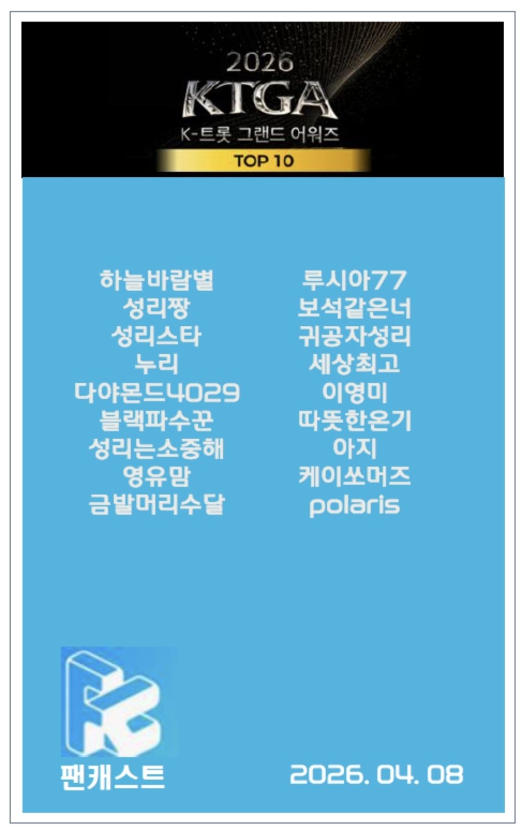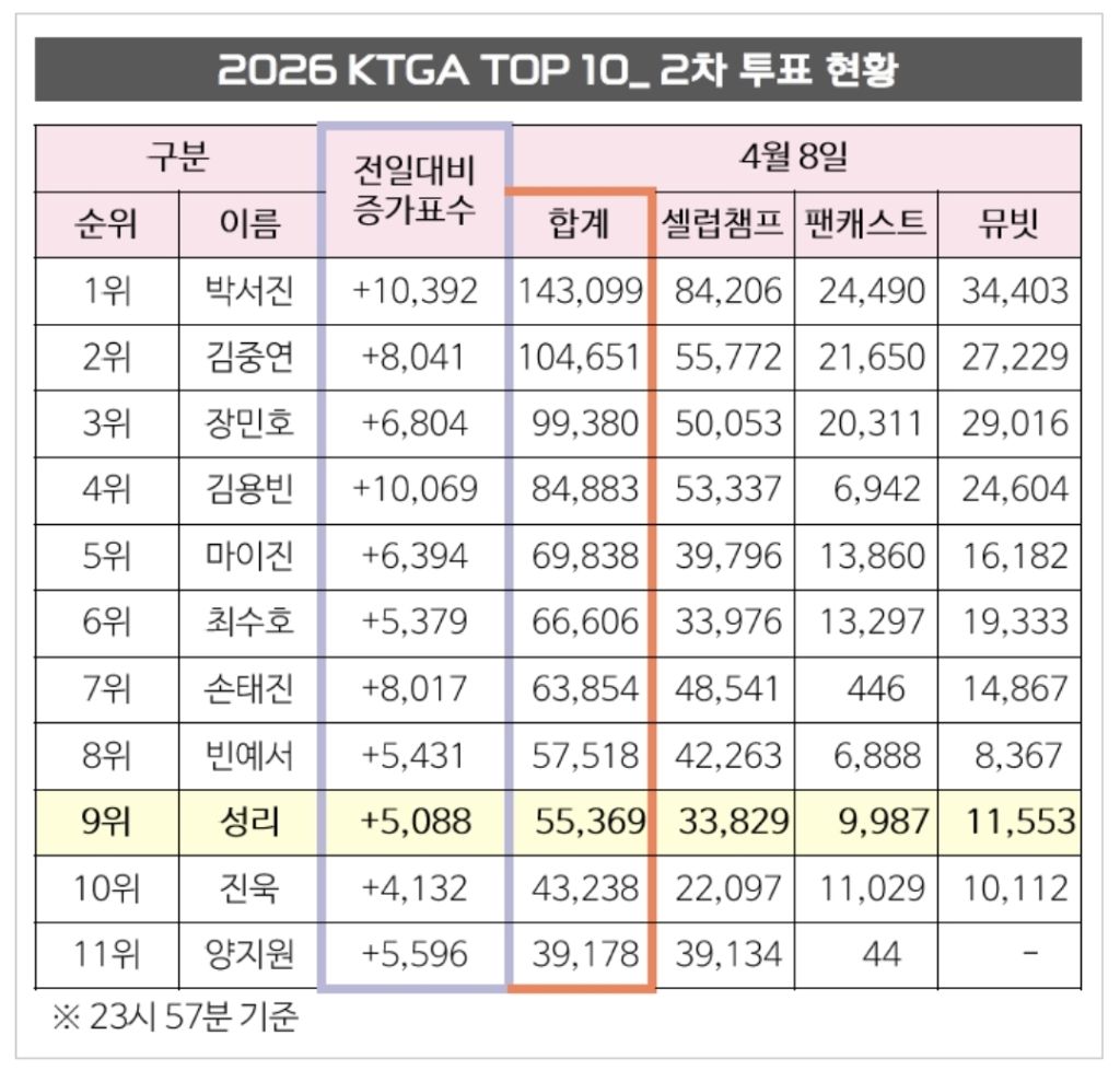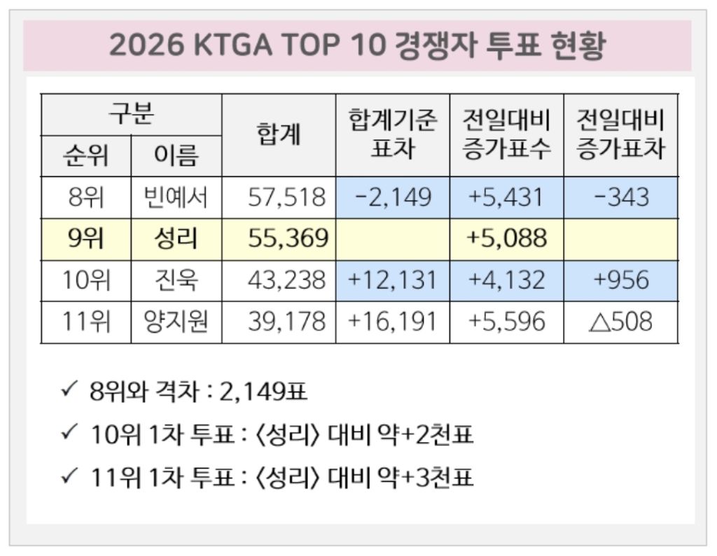 2026 KTGA TOP 10 2차 투표 15일차입니다.