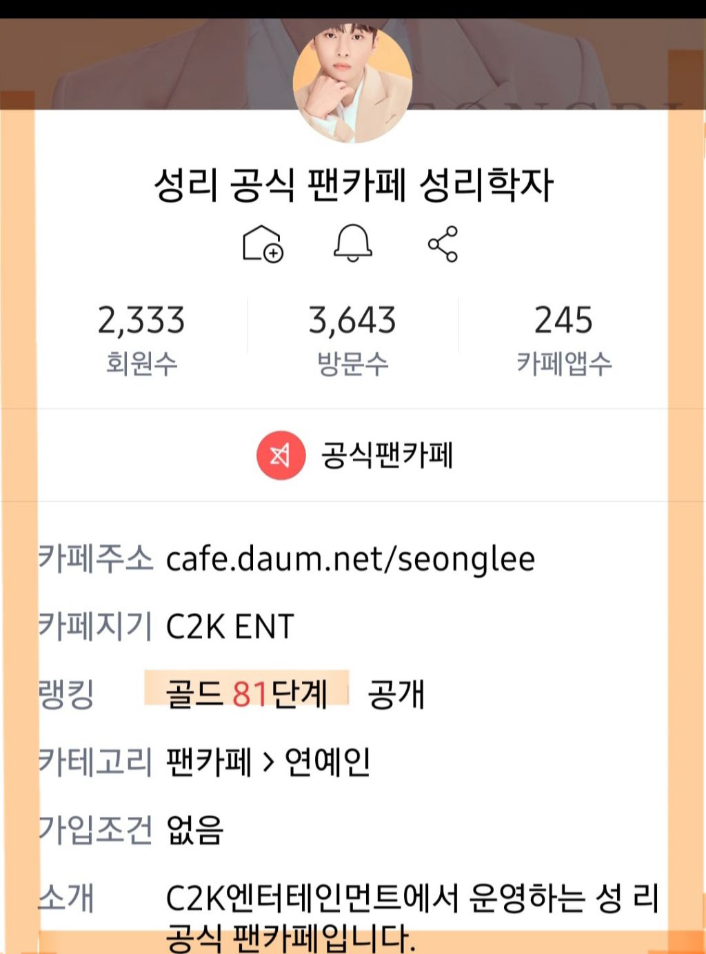 ⬛️ 공식팬카페 전체 등급 결과는 아래와 같습니다.