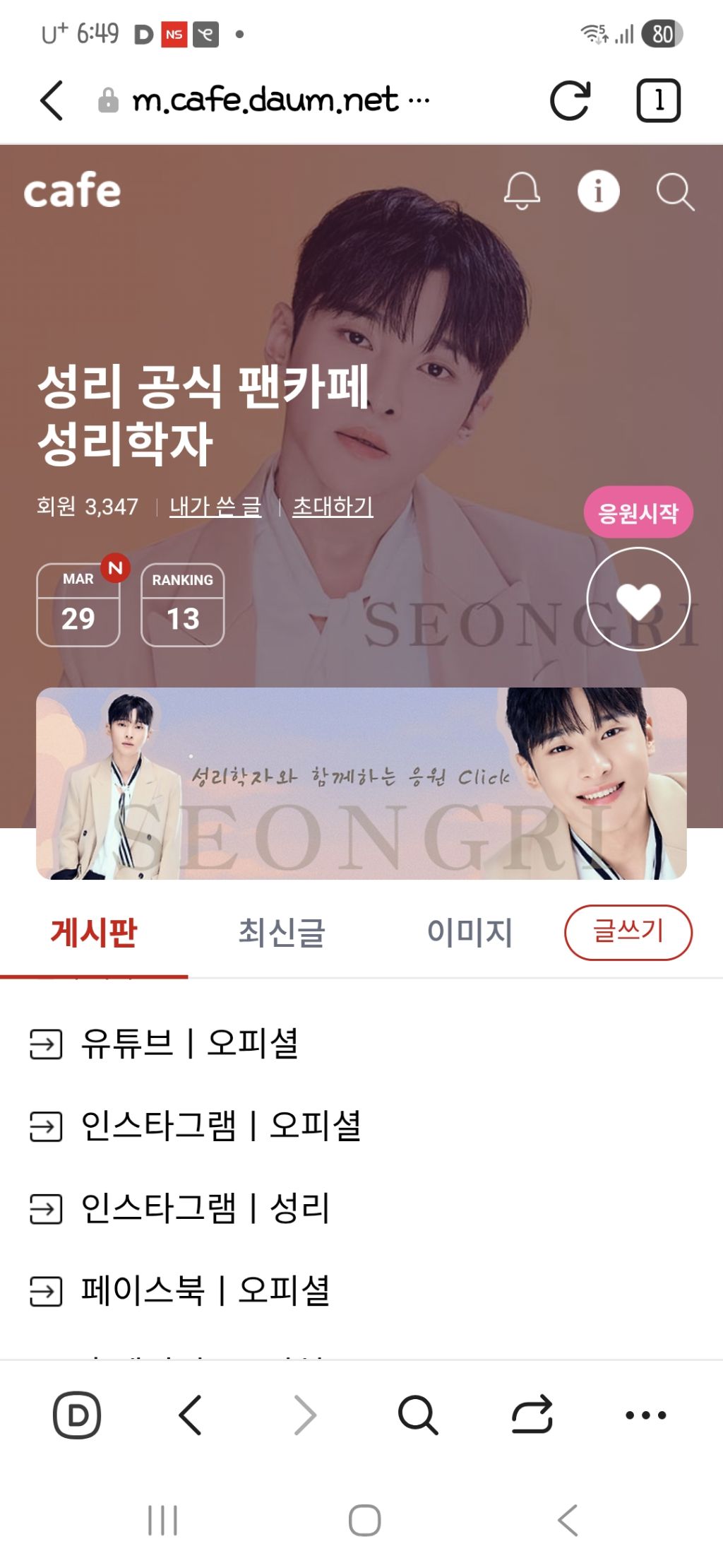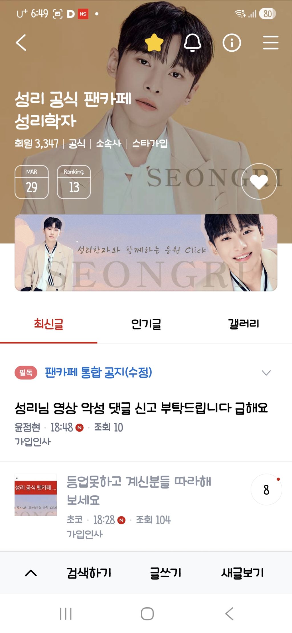 저는 1월에가입하고 슬쩍 출석과 눈팅만하던 팬이였어요 사실 이런거 잘 할줄도 몰라서,,,