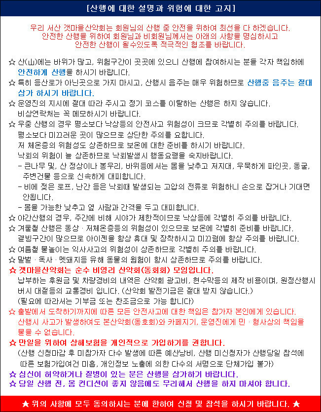 대기 1번 김석배님 산행 참석 가능하십니다~~ -