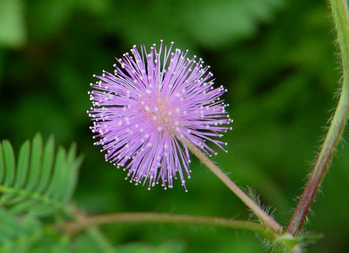 9월10일의 꽃은 '미모사', 꽃말은 '예민, 섬세, 민감', Humble plant, Sensitive plant. 잎에 손을 살짝 대면 바로 잎을 접어버리는 신경 예민한 아가씨, 그래서 '신경초'라고도, 식충식물과 함께 식물도 움직인다는 걸 보여준다.