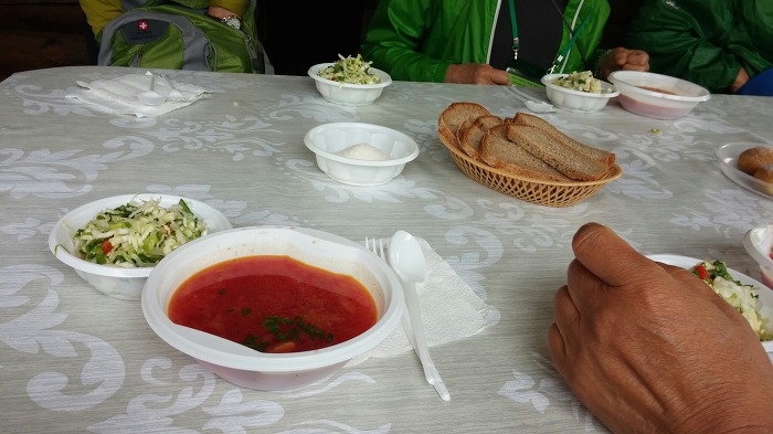 소액 갹출해서 저녁 식사 시 각 테이블에 보드카로 보답. 저녁은 호텔에서 중국식으로 먹음. 내일 떠날 본 산행을 위해 일찍 취침