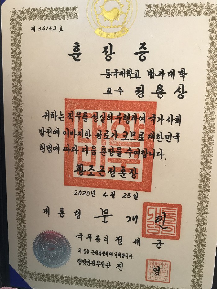 7회 정용상 동문이 '황조근정훈장' 수훈이 결정 되었으나