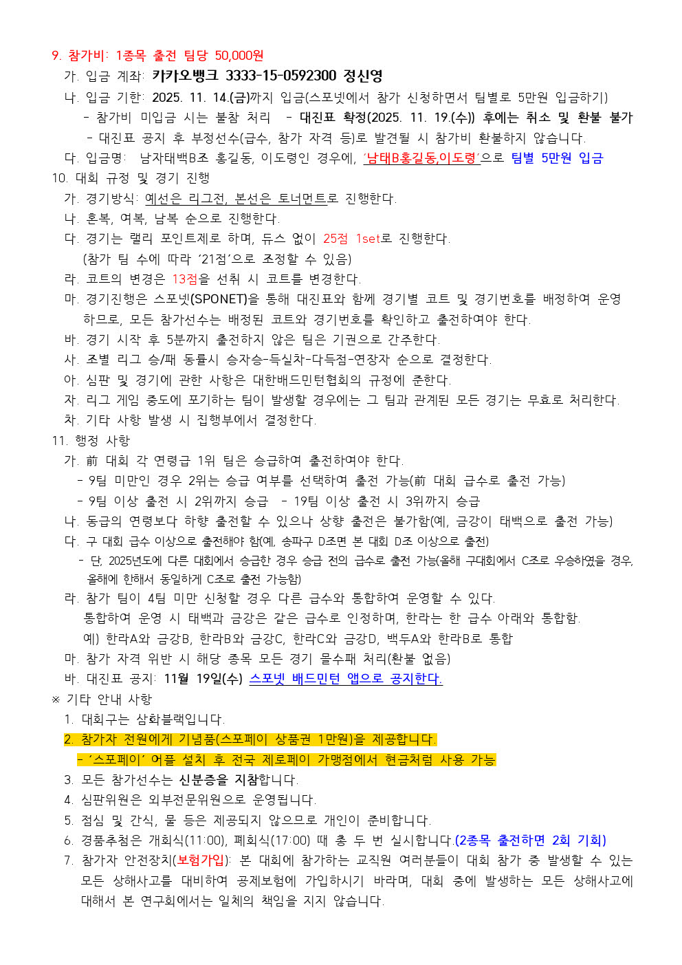 다름이 아니오라 다음과 같이 배드민턴대회가 있어 공유합니다.