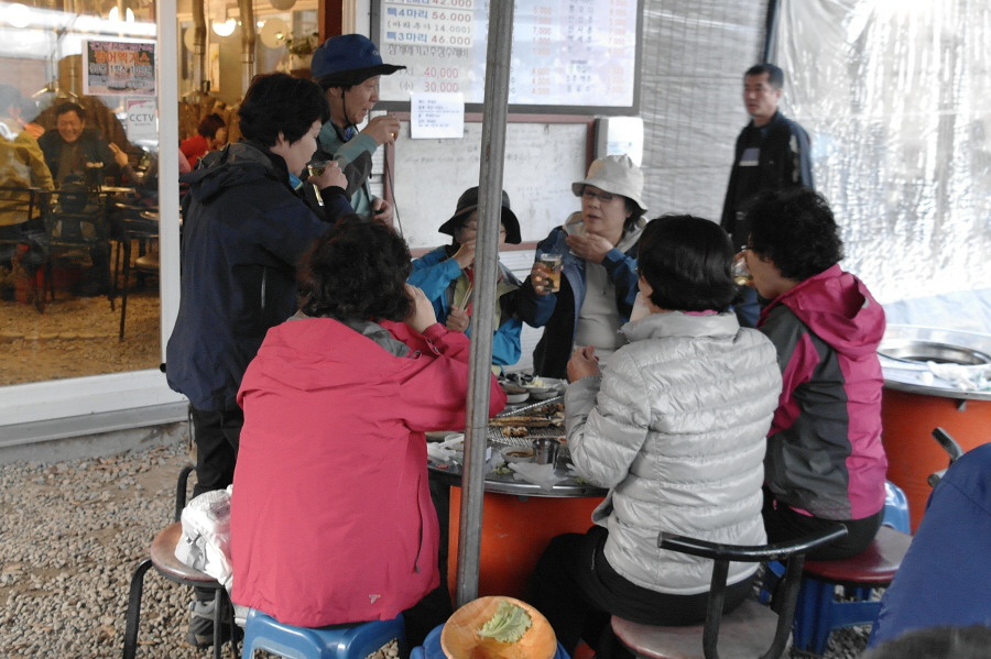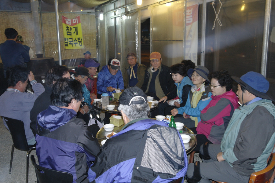 벌써 지하철 개찰구를 들어간 동료들에게 핸드폰으로 이별을 고하고 역앞의 막걸리집에 들어가니 회원 대부분 유턴하고 다시 나와 2차에 참석합니다. 오늘의 주제는 거진 100% 제주도 세계 7대 경관 선정에 대한 덕담들입니다. 양 정수의 입이 벌어지며, 오늘의 주대를 흔쾌히 책임졌읍니다.