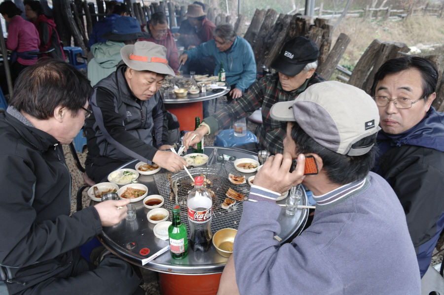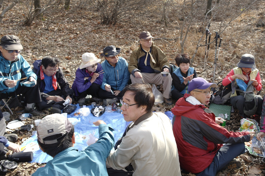 12시 20분 중간의 식사터를 마다하지 않고 철문봉까지 직행하니 집이 멀고, 혹시나 전철 시간에 늦을까 걱정하여, 1시간도 넘게 일찍 도착한 두명이 기다리고 있었읍니다.