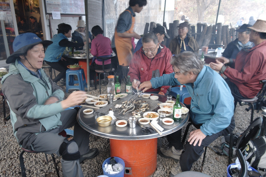 날씨가 차가운 탓인지, 장어가 떨어질까 걱정해서인지, 능선을 내달리는 속도에 불이 붙었읍니다. 4시에 B팀과 식당에서 만나기로 했는 데... 계속 천천히 갈 것을 요구하지만 줄이 워낙 길어 소통이 되지 않읍니다.