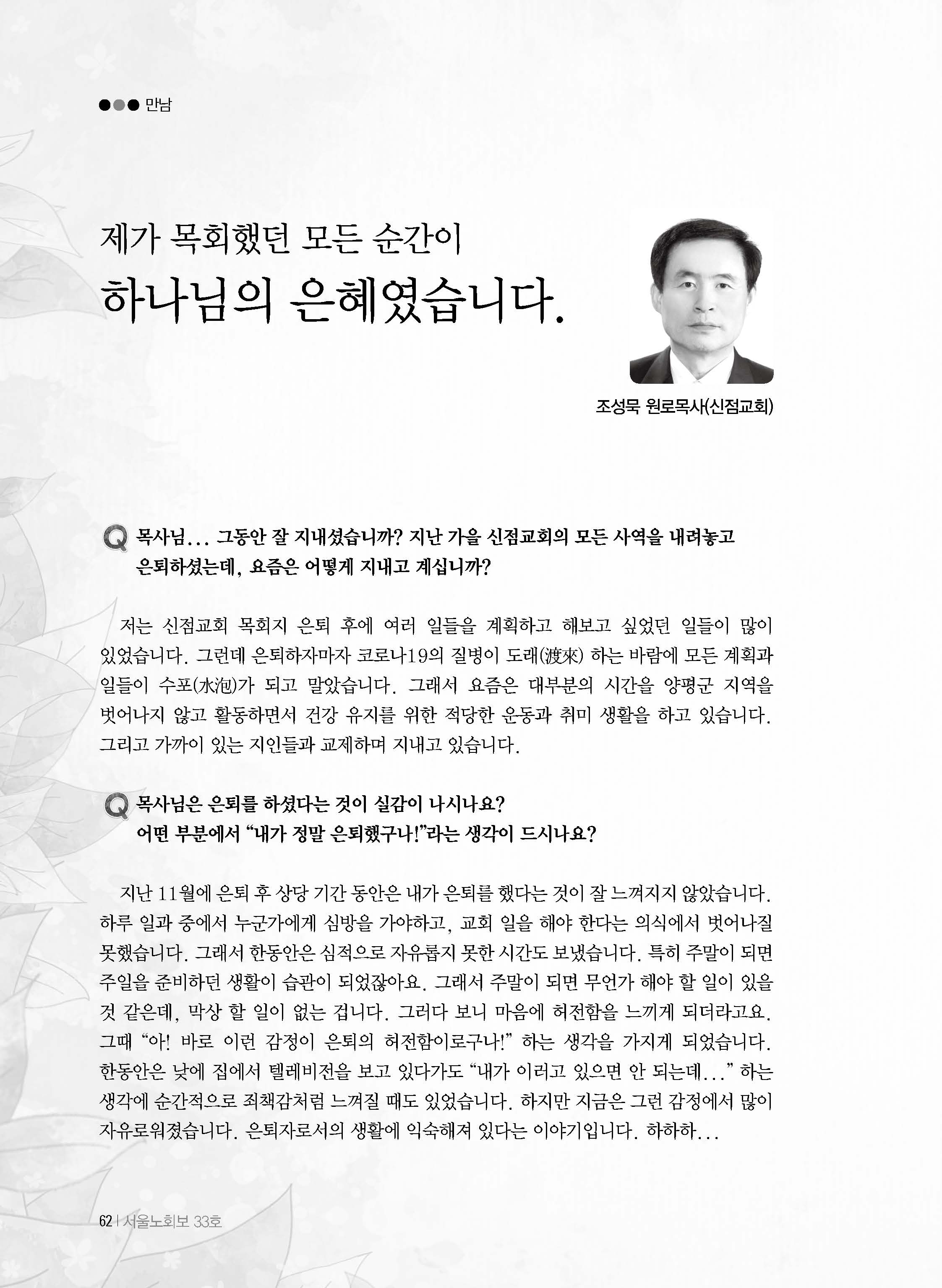 서울노회보 제33호(62p~81p)2020.9.30 발행 작성자구성조 장로(선목)|작성시간20.11.21|조회수67 목록 댓글 0 글자크기 작게가 글자크기 크게가 다음검색 현재 게시글 추가 기능 열기 북마크 공유하기 신고 센터로 신고 댓글 댓글 0 댓글쓰기 답글쓰기 댓글 리스트