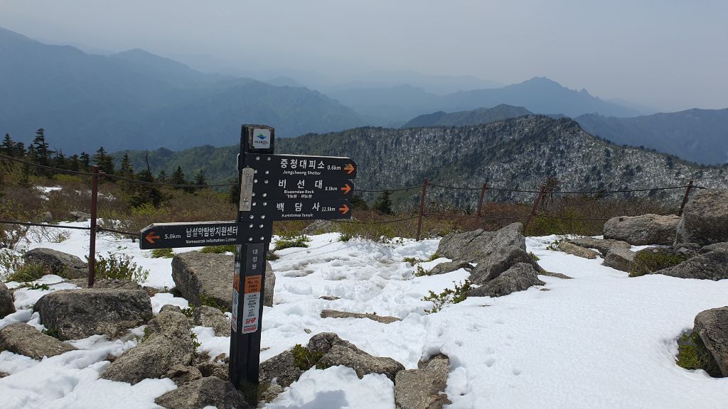 설악산 대청봉 2024.5.17. 작성자몽산|작성시간24.05.22|조회수53 목록 댓글 2 글자크기 작게가 글자크기 크게가 여름이 다가오는듯 제법 더운 날씨가 기승을 부리더니 난데 없는 5월16일 소청봉에는 40cm의 폭설이 내려 봉정암에 雪國의 전경이 발길을 잡는군요.. . 다음검색 현재 게시글 추가 기능 열기 북마크 공유하기 신고 센터로 신고 댓글 댓글 2 댓글쓰기 답글쓰기 댓글 리스트 작성자손희정 | 작성시간 24.09.02 두분이서 갔었나봐유. 추운데 고생했습니다. 중13. 고 15회 졸업생입니다. 답댓글 작성자mongsan | 작성시간 24.12.01 5월에 폭설이 내렸다고하여 대중교통으로 나홀로 당일에 다녀왔어요...대청봉에 오르니 강풍으로 인증샷 찍기도 어려웠어요...감사합니다 댓글 전체보기