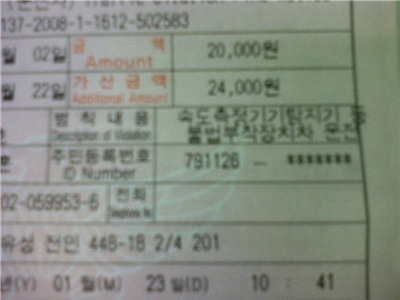 1. 네온등 설치 - 과태료 3만원 (번호판에 네온설치하신분 해당)