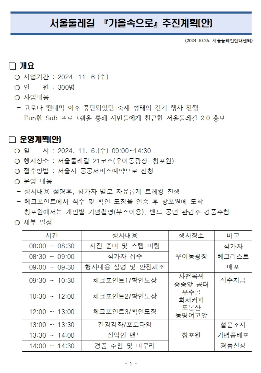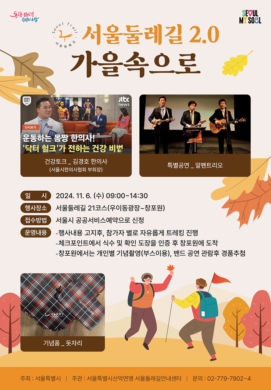 서울둘레길 2.0 개통과 코로나 펜데믹 이후 중단되었던 축제 형태의 가을 걷기 행사를 아래와 같이 진행합니다.