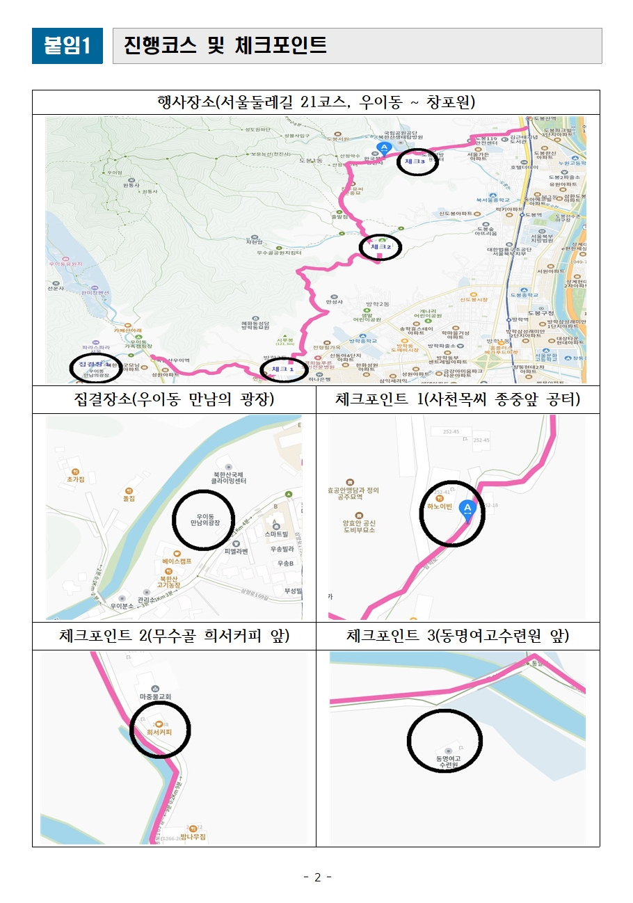 2. 장소 : 서울둘레길 21코스(시작:우이동 만남의광장~종료:창포원)
