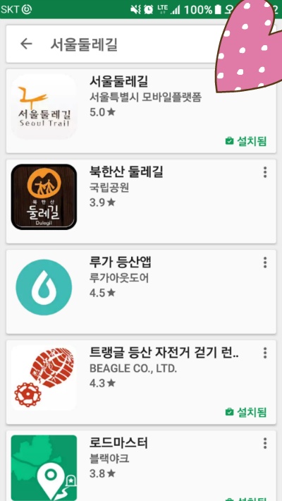 서울둘레길을 검색하시면 서울둘레길 서울툭별시 모바일플렛폼이 뜹니다.