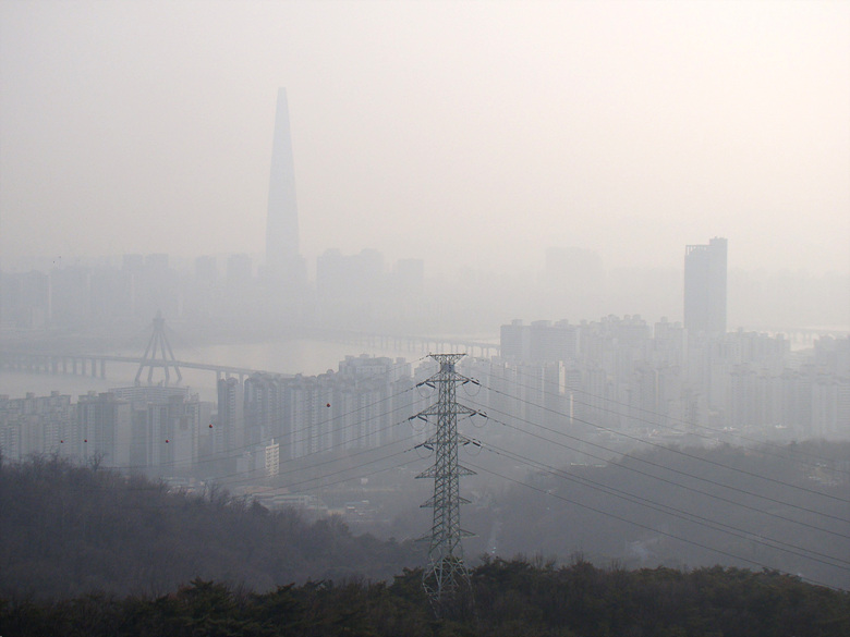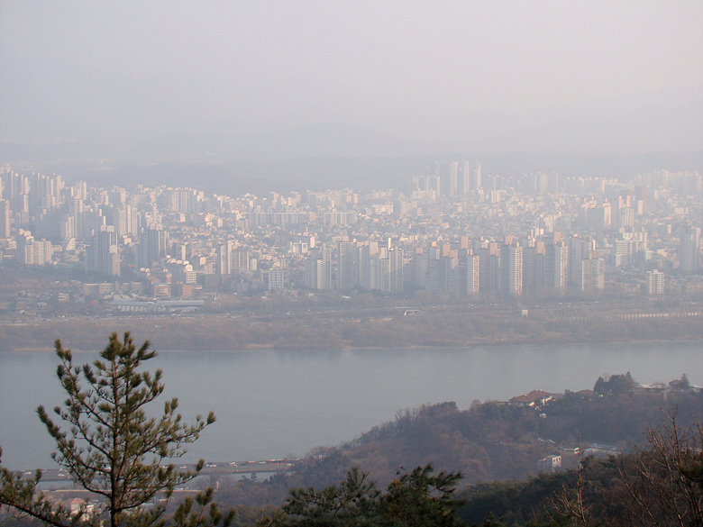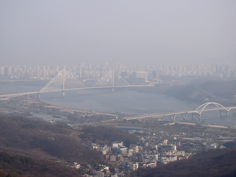 ※ 아직도 걷히지 않은 미세면지로 흐릿한 강건너 암사동 방향