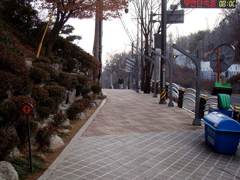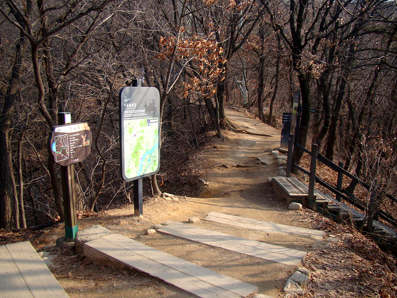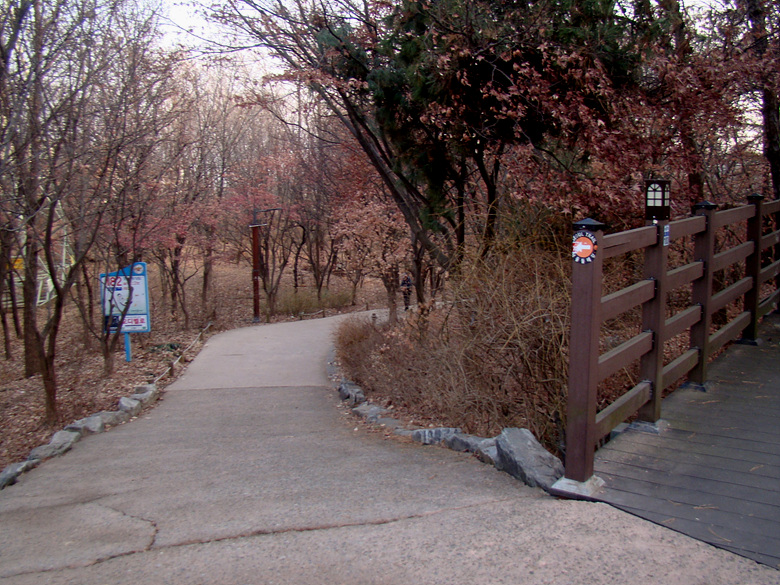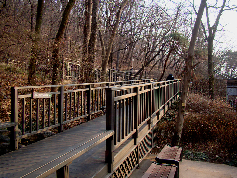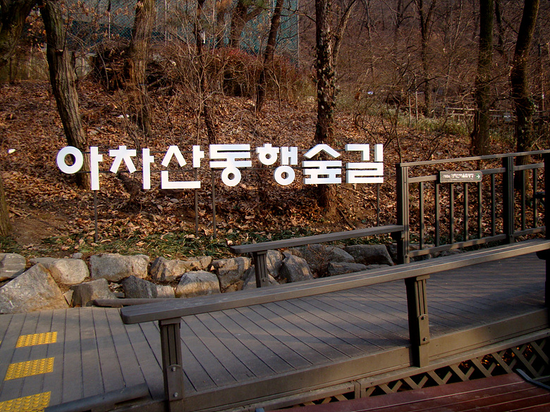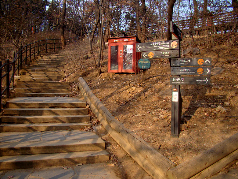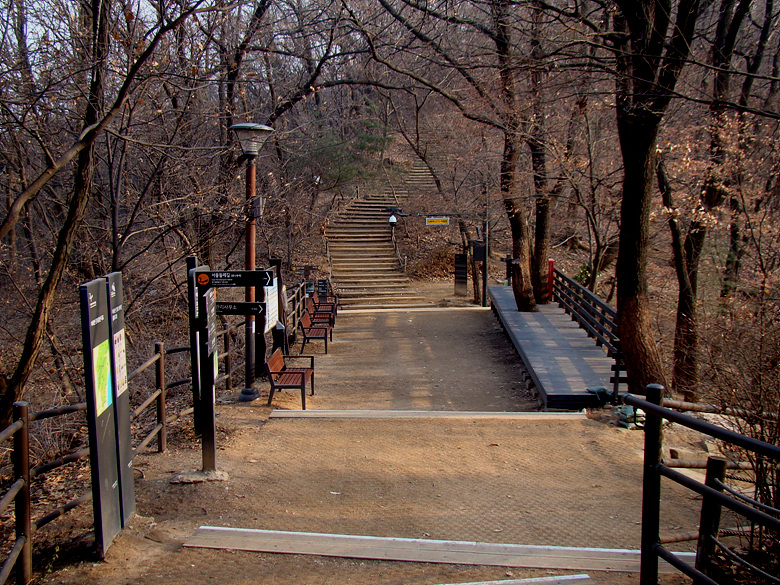 ※ 사가정역에서 깔딱고개쉼터로 올라서는 데크계단 입구 아차산 5-1코스 진행방향