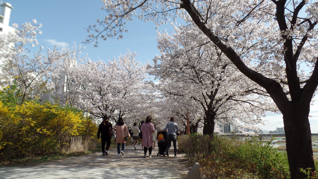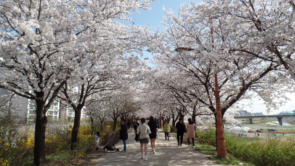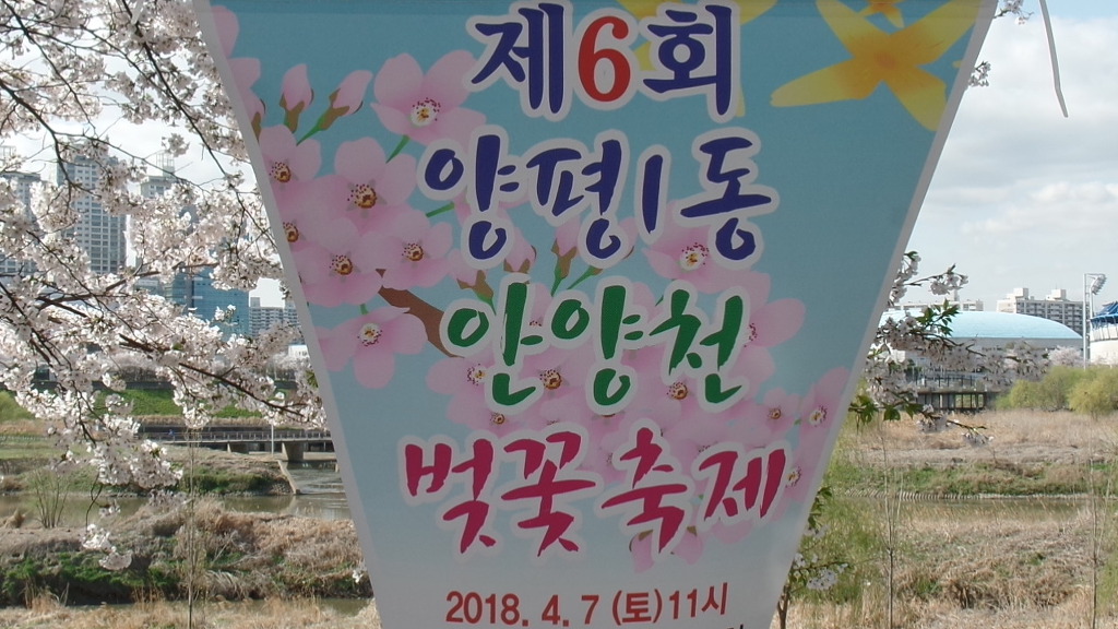 두근두군 꽃피는 봄, 안양천 뚝방길을 따라 일제히 분홍빛 물감을 흩뿌려 놓은 안양천에는 가족, 연인 그리고 친구들과 함께 봄의 정취를 만끽하며 걷는 모습을 볼 수가 있다. 2018년 4월 7일(토) 제6회 양평1동 안양천 벚꽃축제가 오목교 아래 안양천 둔치 일대에서 열린다고 한다.