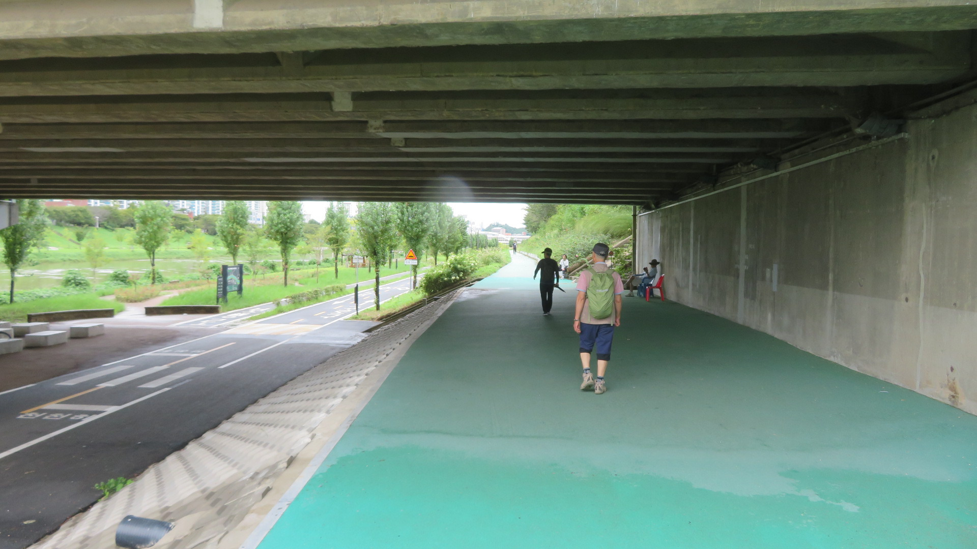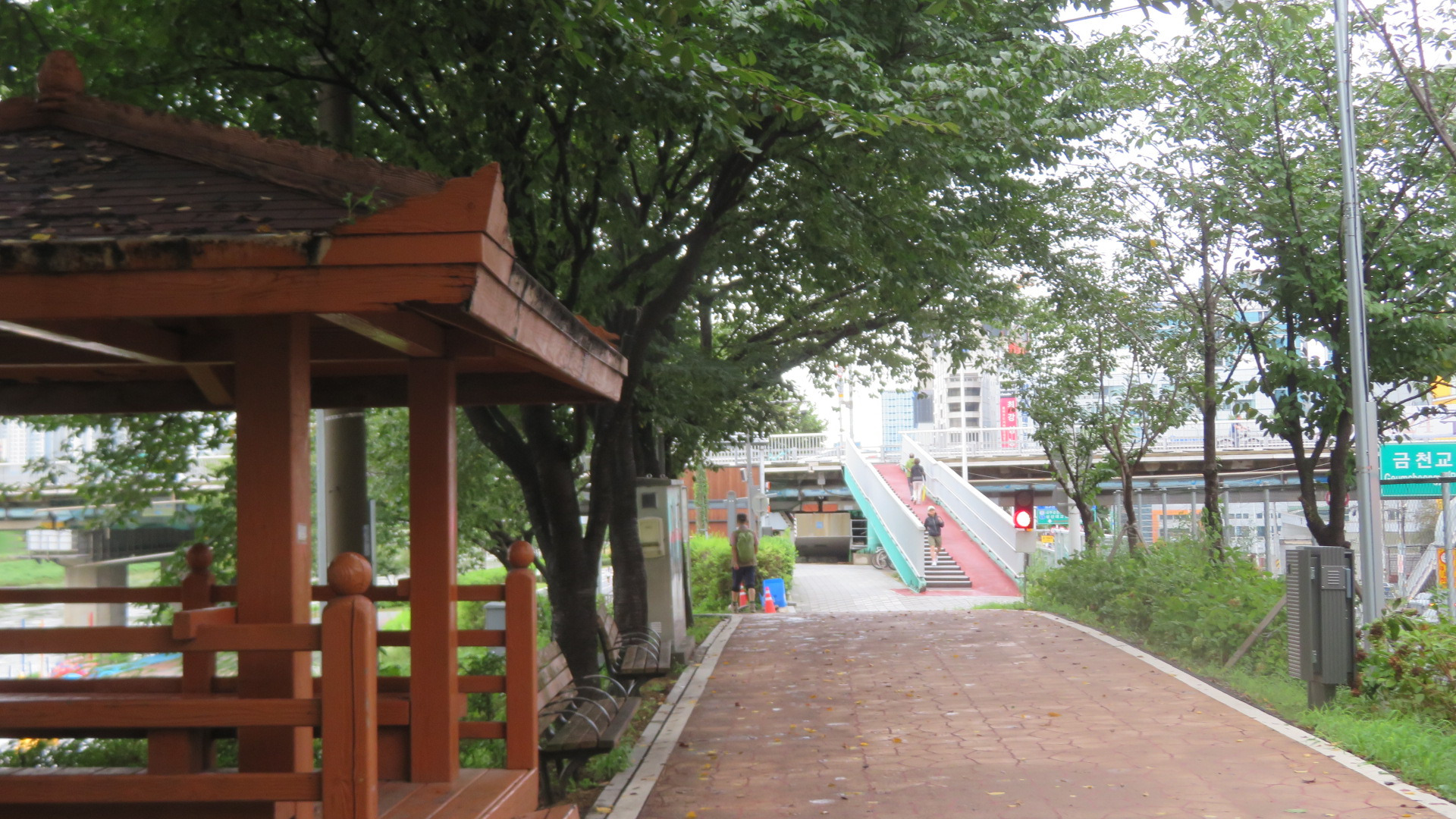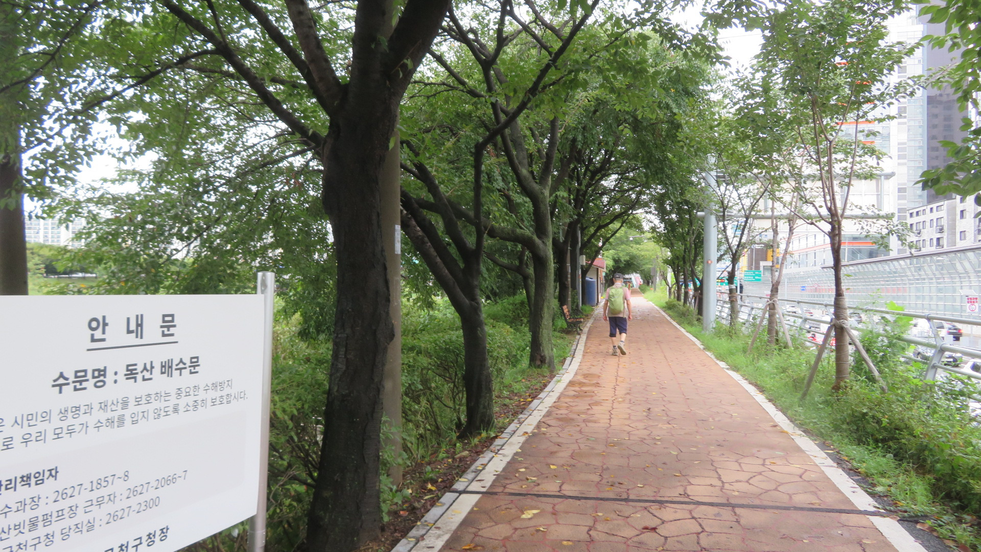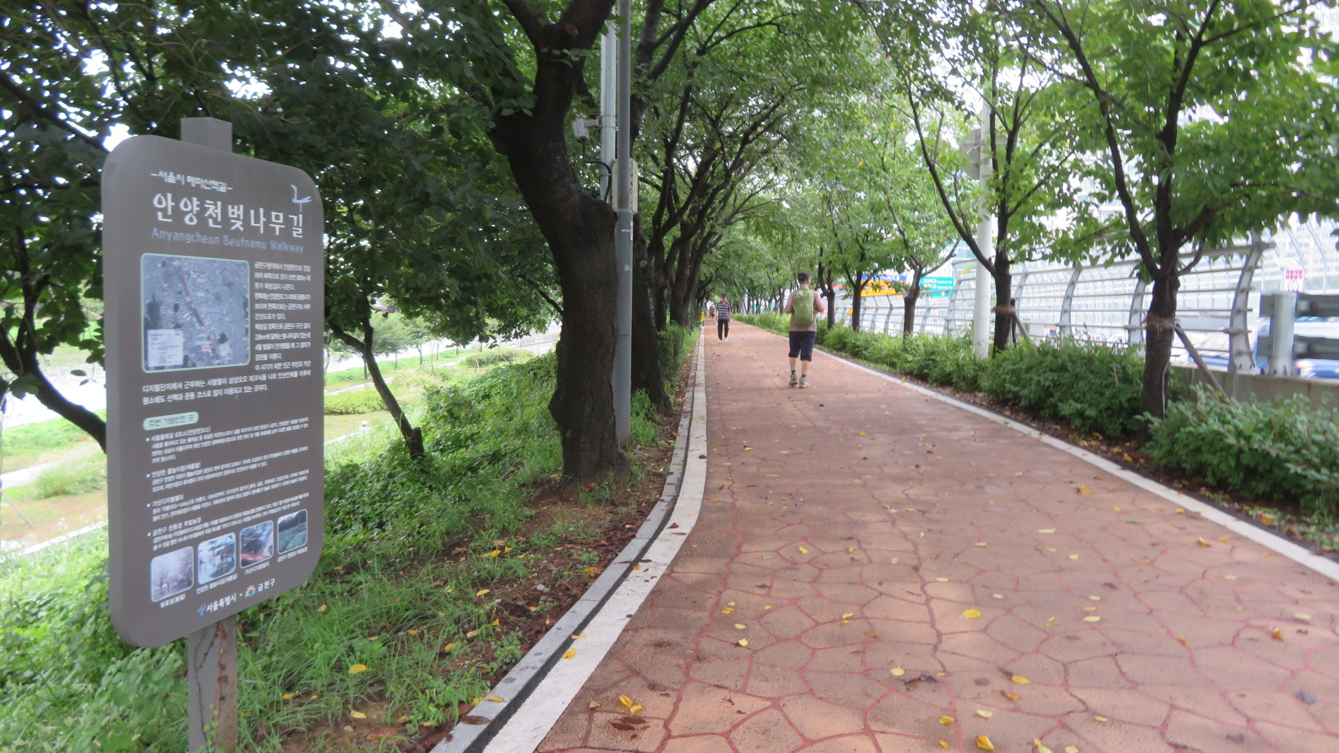 금천교를 통과한다. 가을로 접어들어서도 폭염주의보에 열대야까지 정말 힘든 나날을 보냈는데 밤새 내리던 비가 석수역을 출발하면서 그치더니 서늘한 가을바람이 옷깃에 쓰며든다. 이 길은 11월 중순경이면 벚나무 단풍으로 추억거리를 만들어주는 벚꽃나무 터널이다.