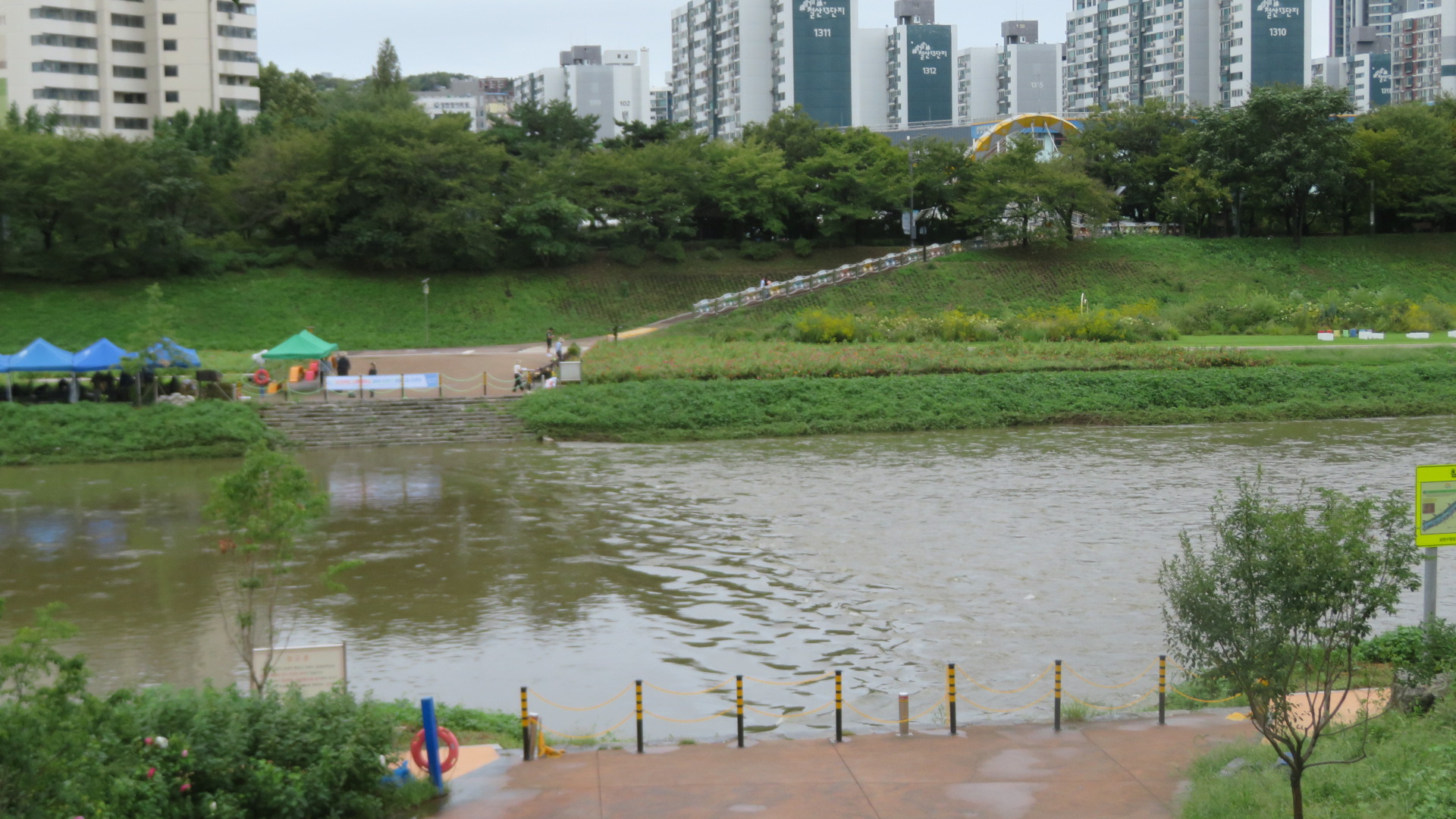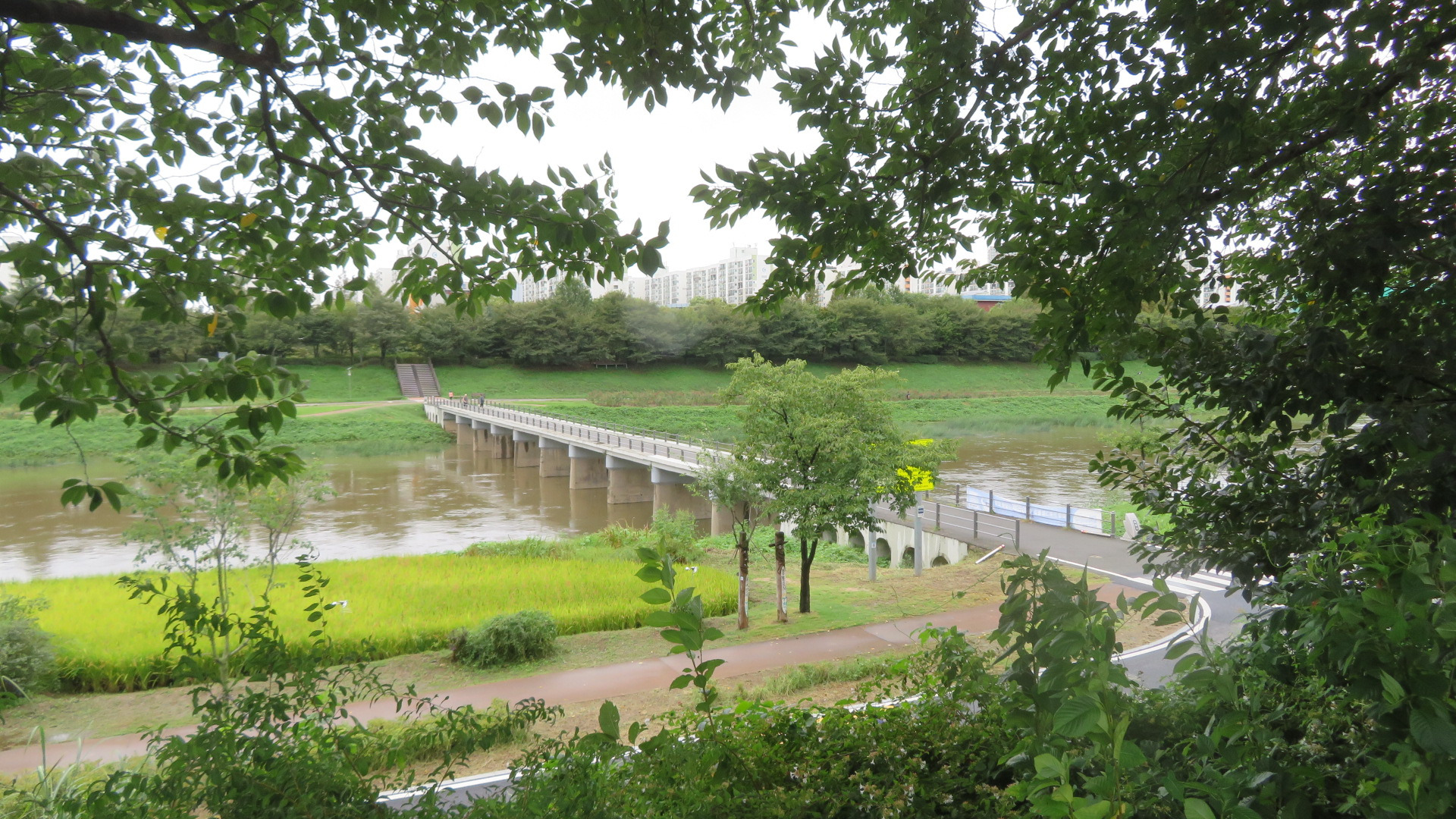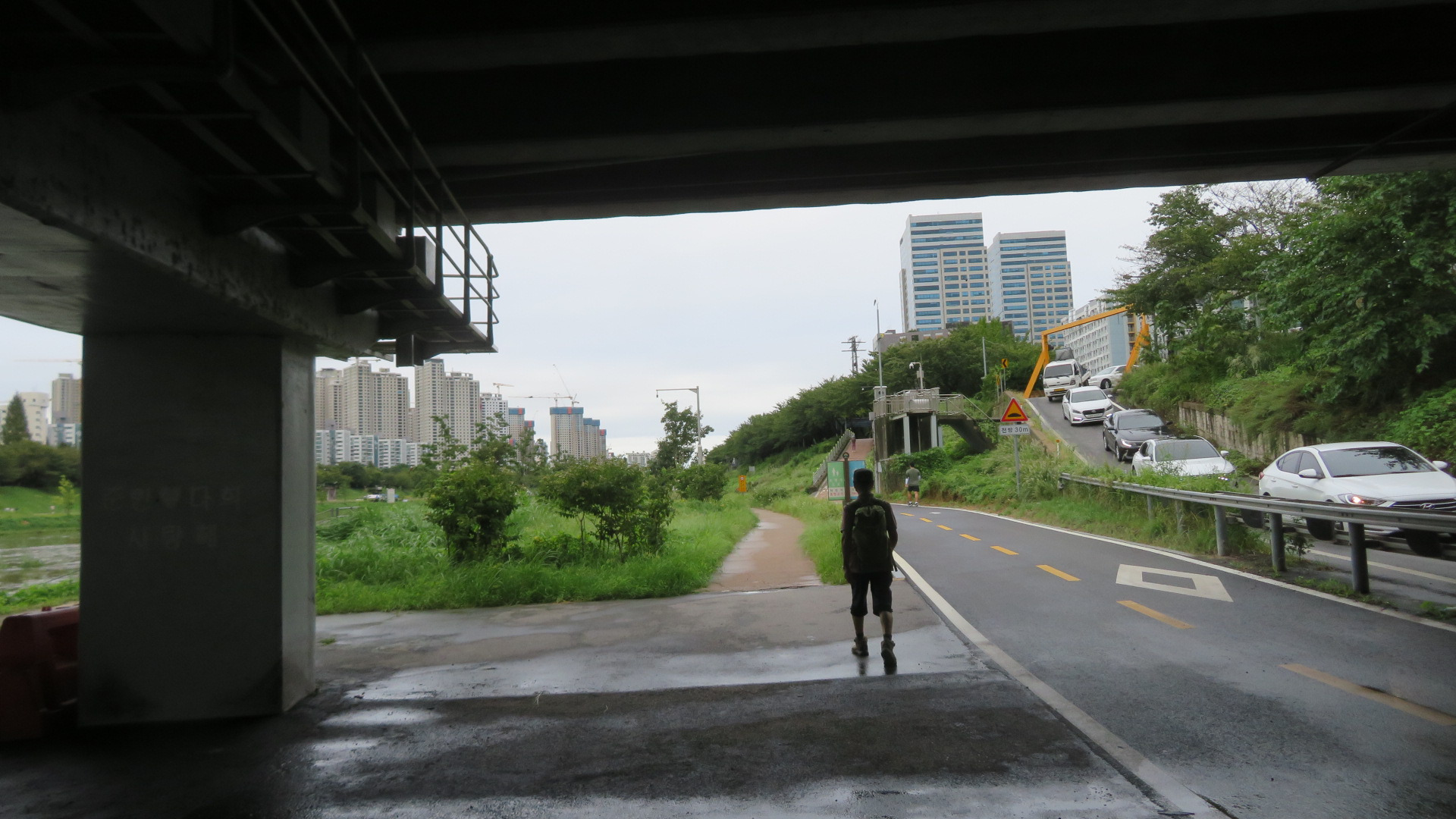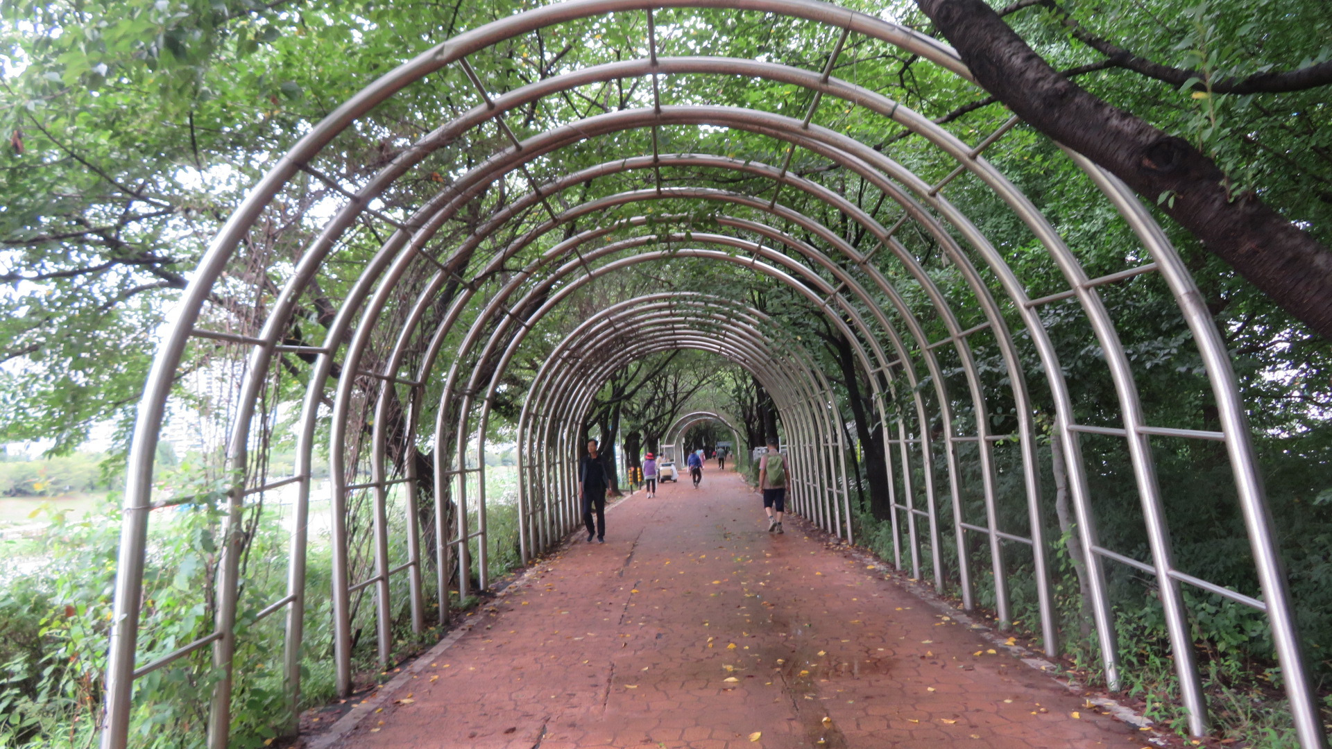 금천교를 통과한다. 가을로 접어들어서도 폭염주의보에 열대야까지 정말 힘든 나날을 보냈는데 밤새 내리던 비가 석수역을 출발하면서 그치더니 서늘한 가을바람이 옷깃에 쓰며든다. 이 길은 11월 중순경이면 벚나무 단풍으로 추억거리를 만들어주는 벚꽃나무 터널이다.
