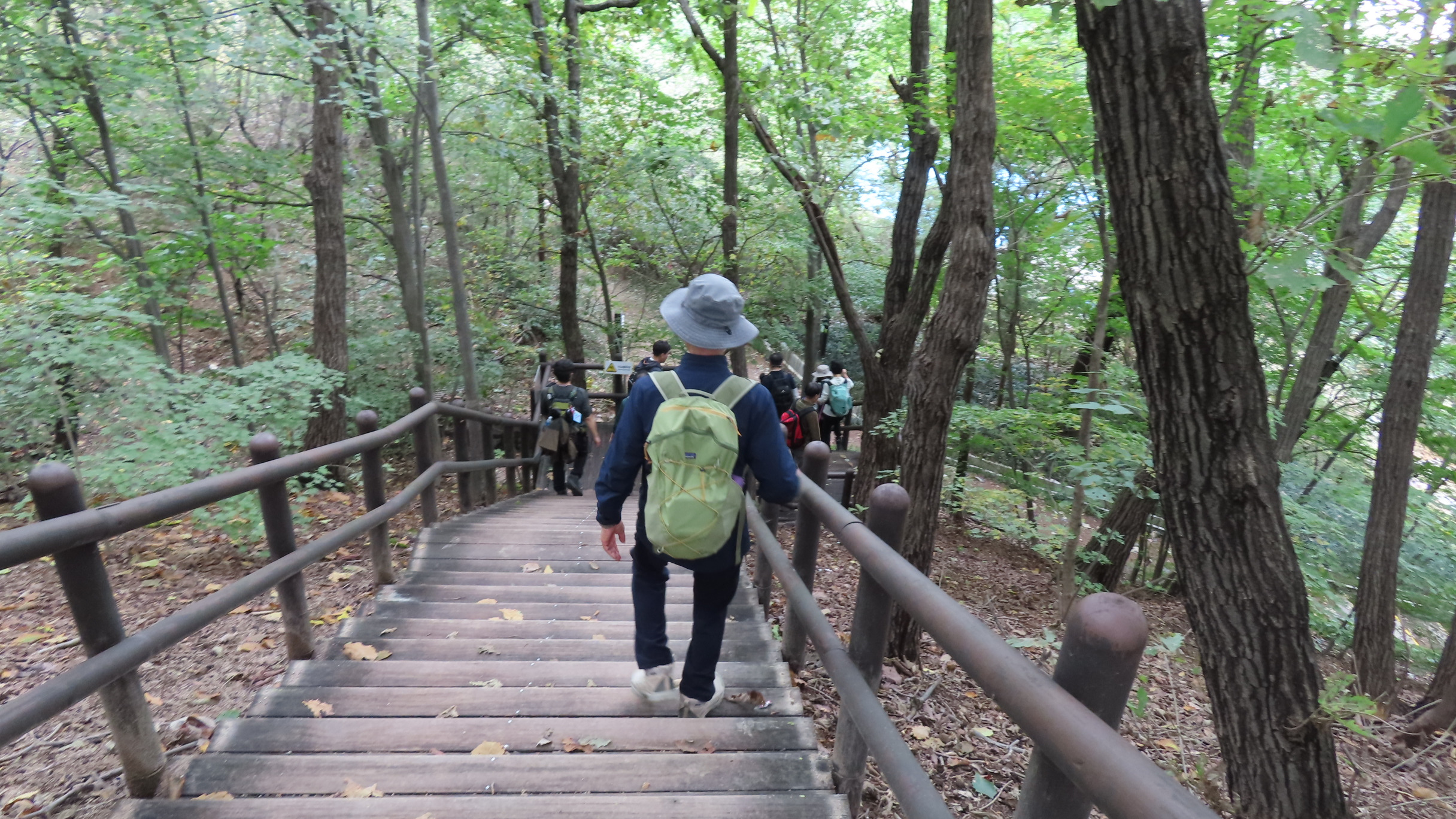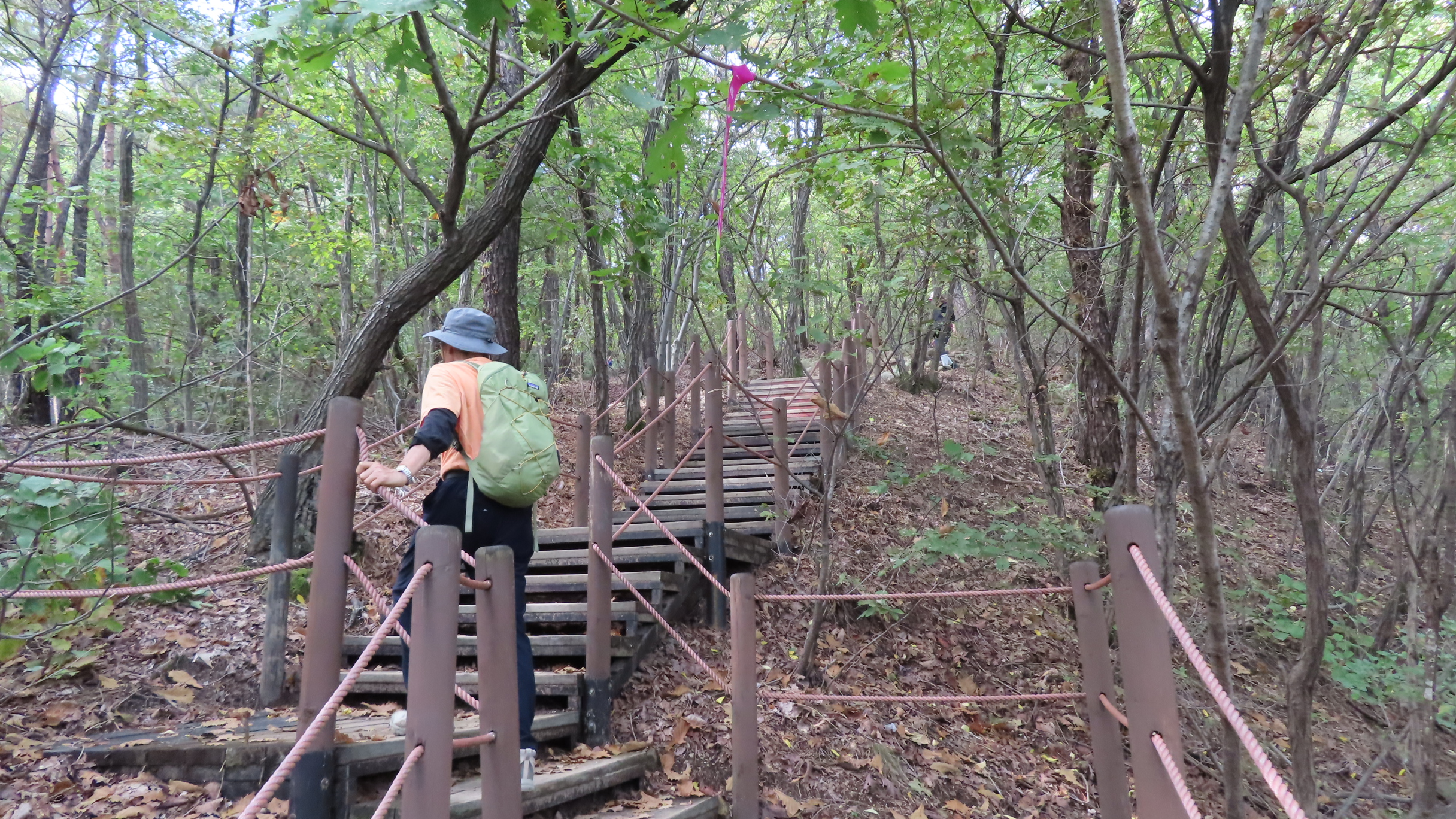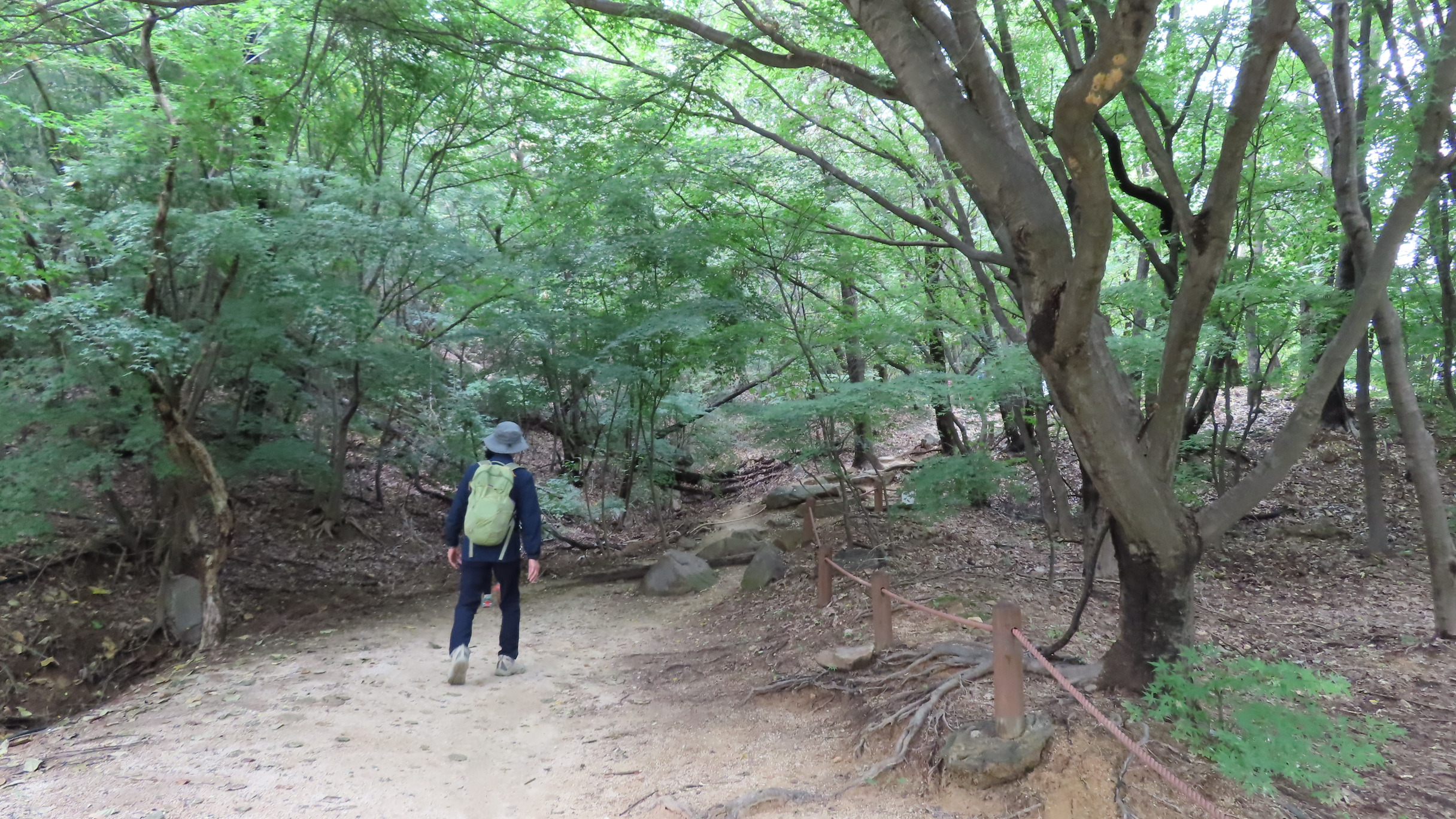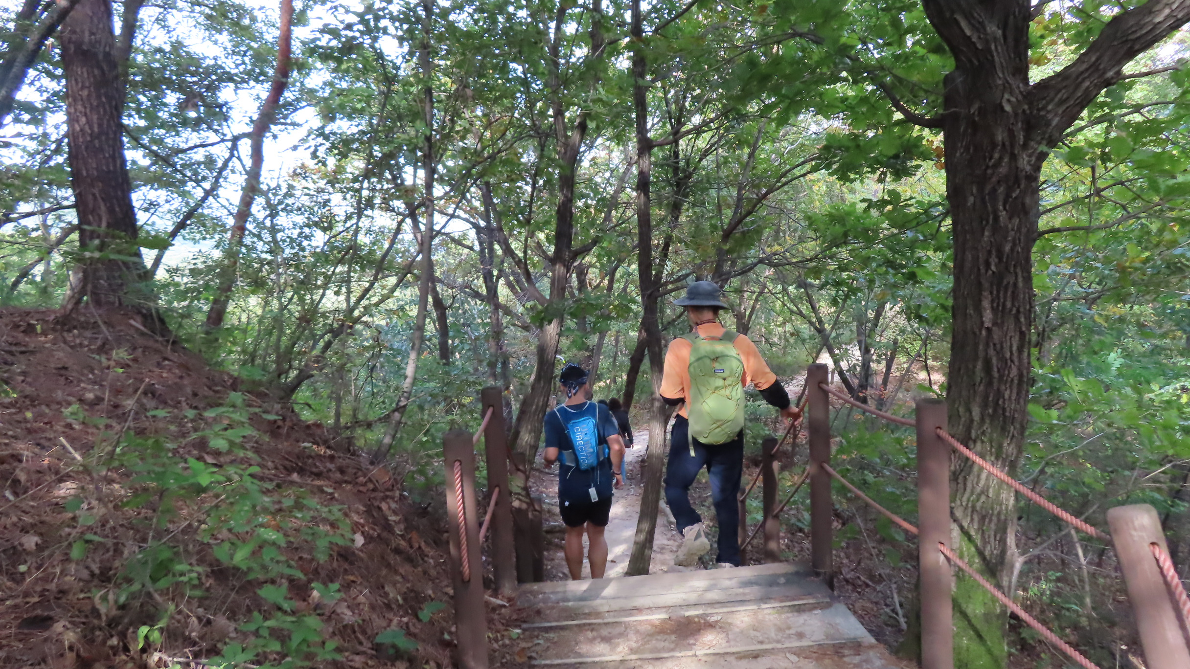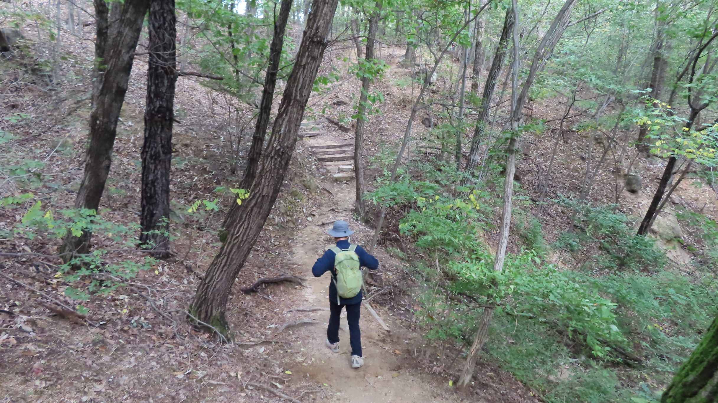 오르막길이 끝나면서 좌측으로 우이암을 올려다 볼 수 있는 쉼터가 있지만 우측으로 이어간다. 곧바로 좌측으로 내리막 계단길이다.