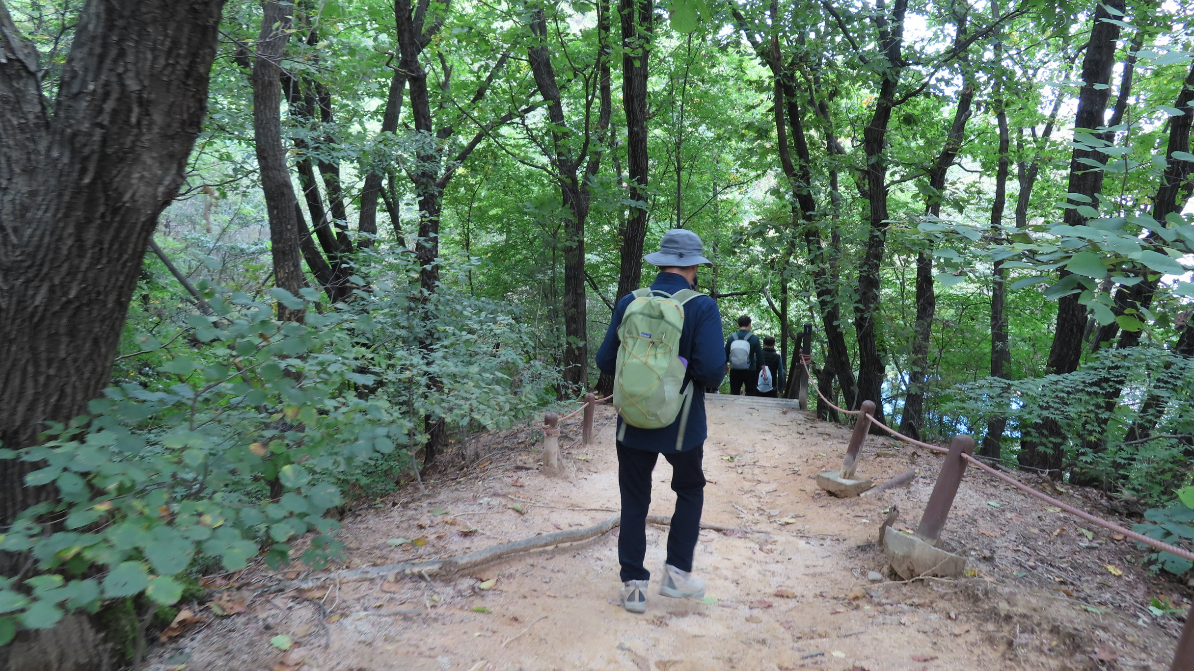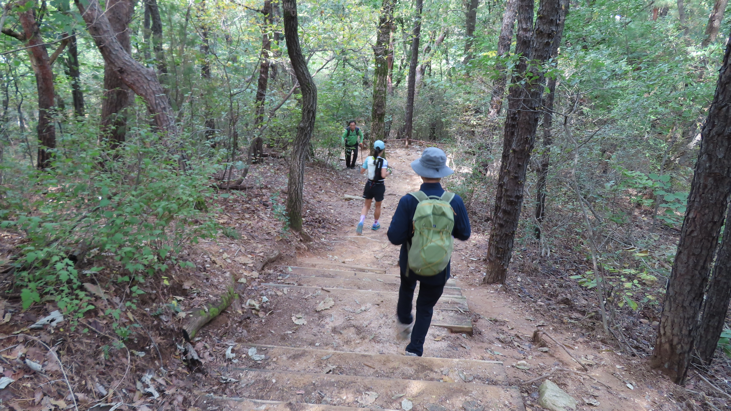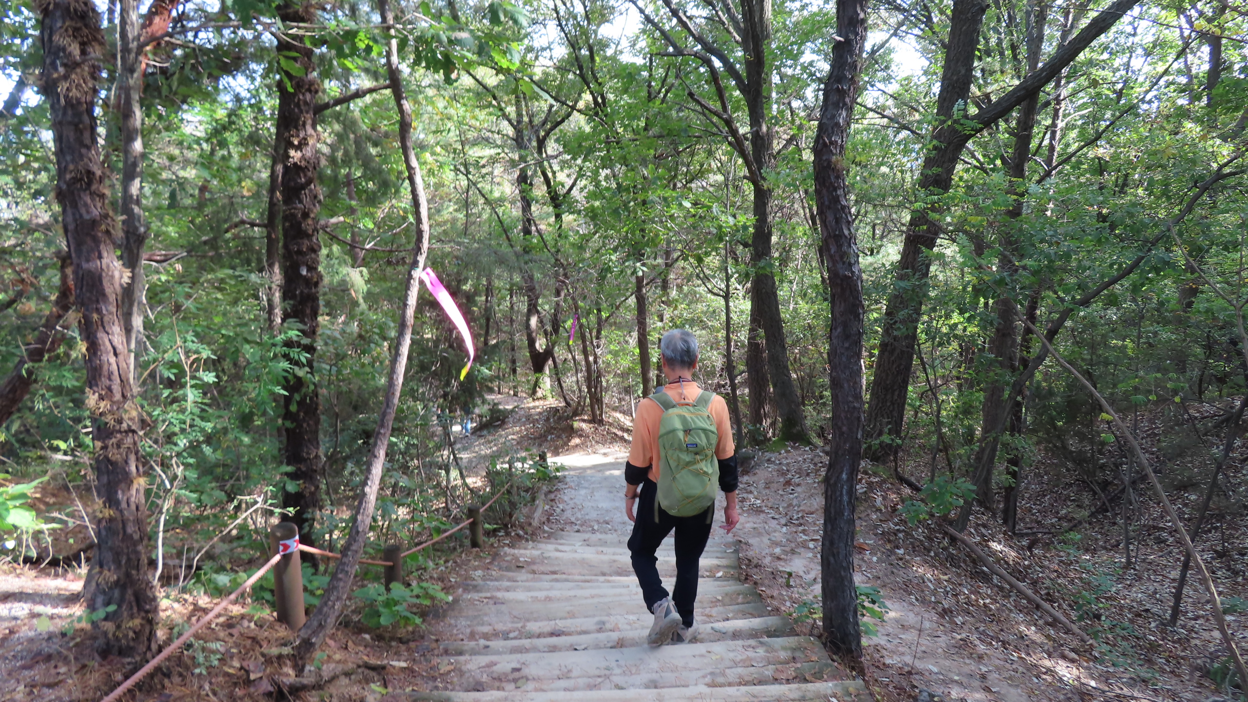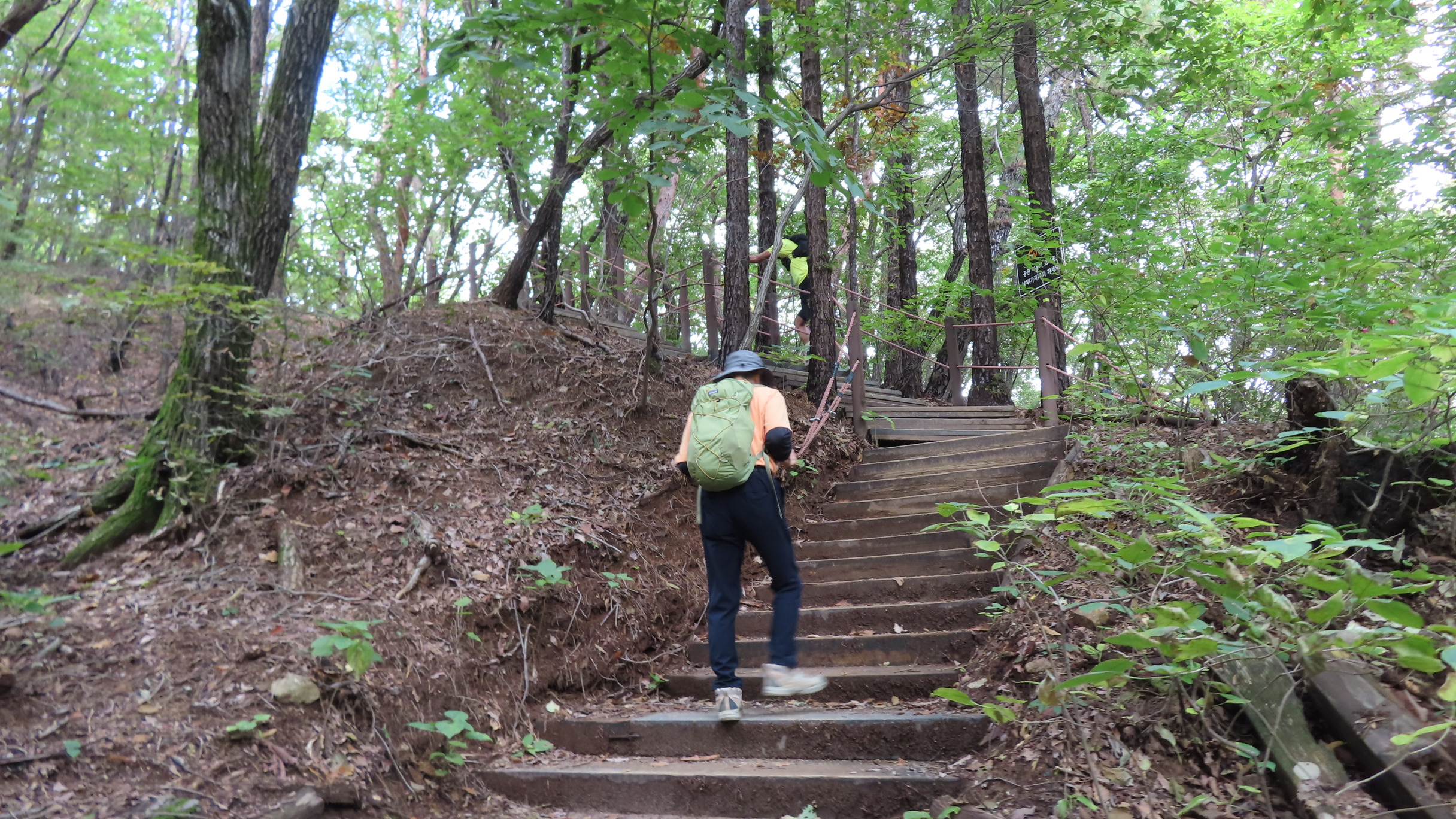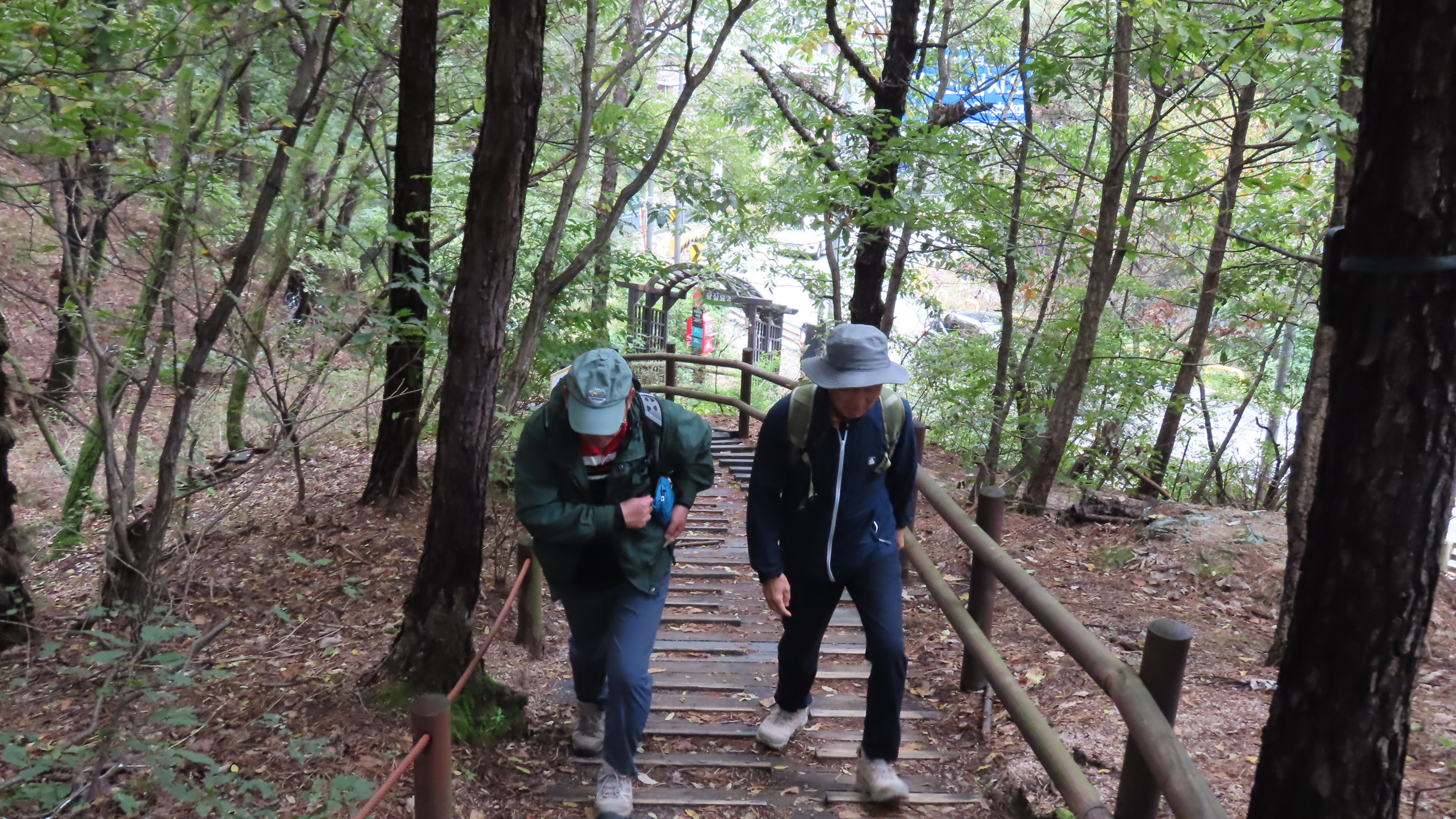 오르막길이 끝나면서 좌측으로 우이암을 올려다 볼 수 있는 쉼터가 있지만 우측으로 이어간다. 곧바로 좌측으로 내리막 계단길이다.