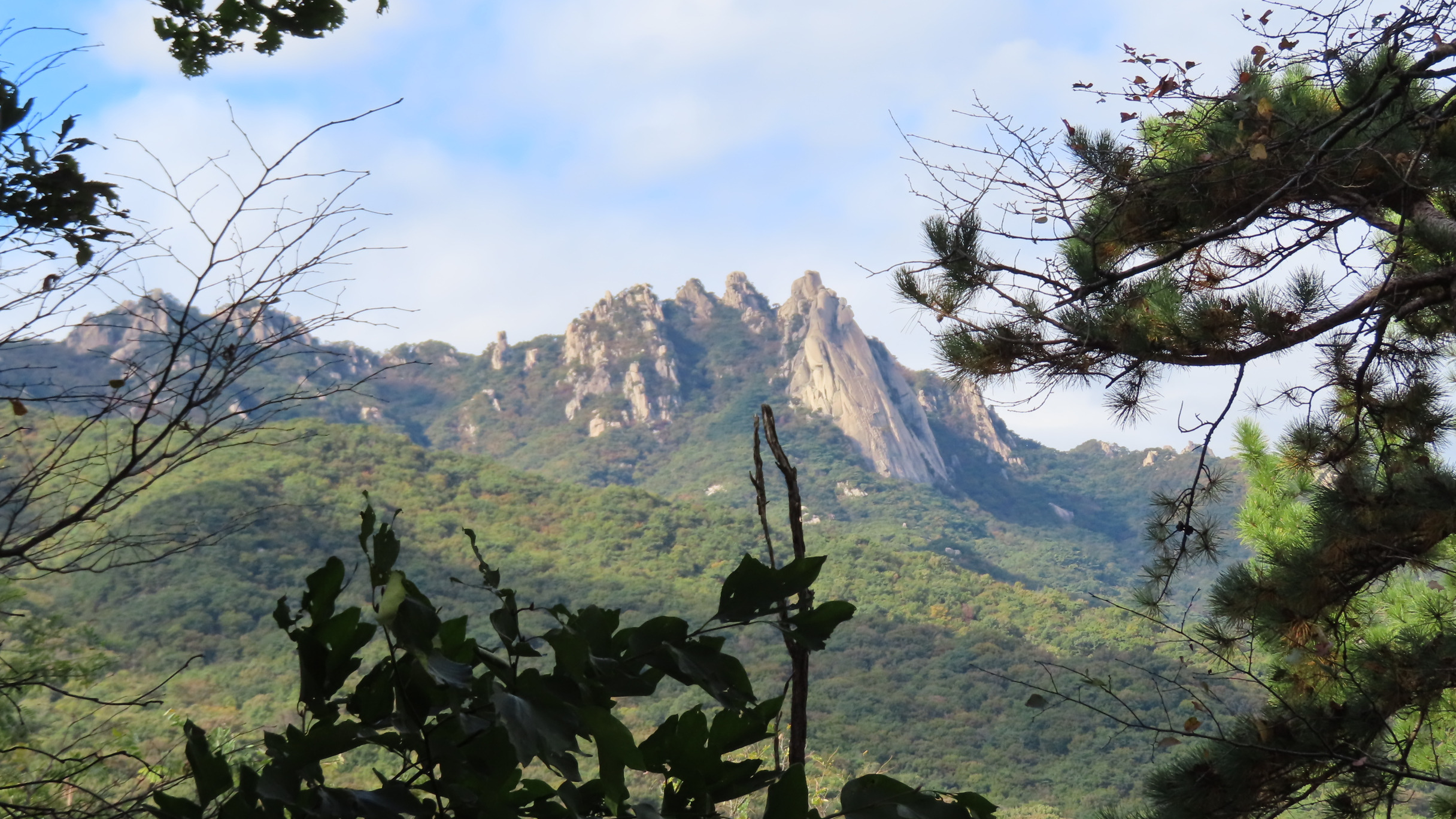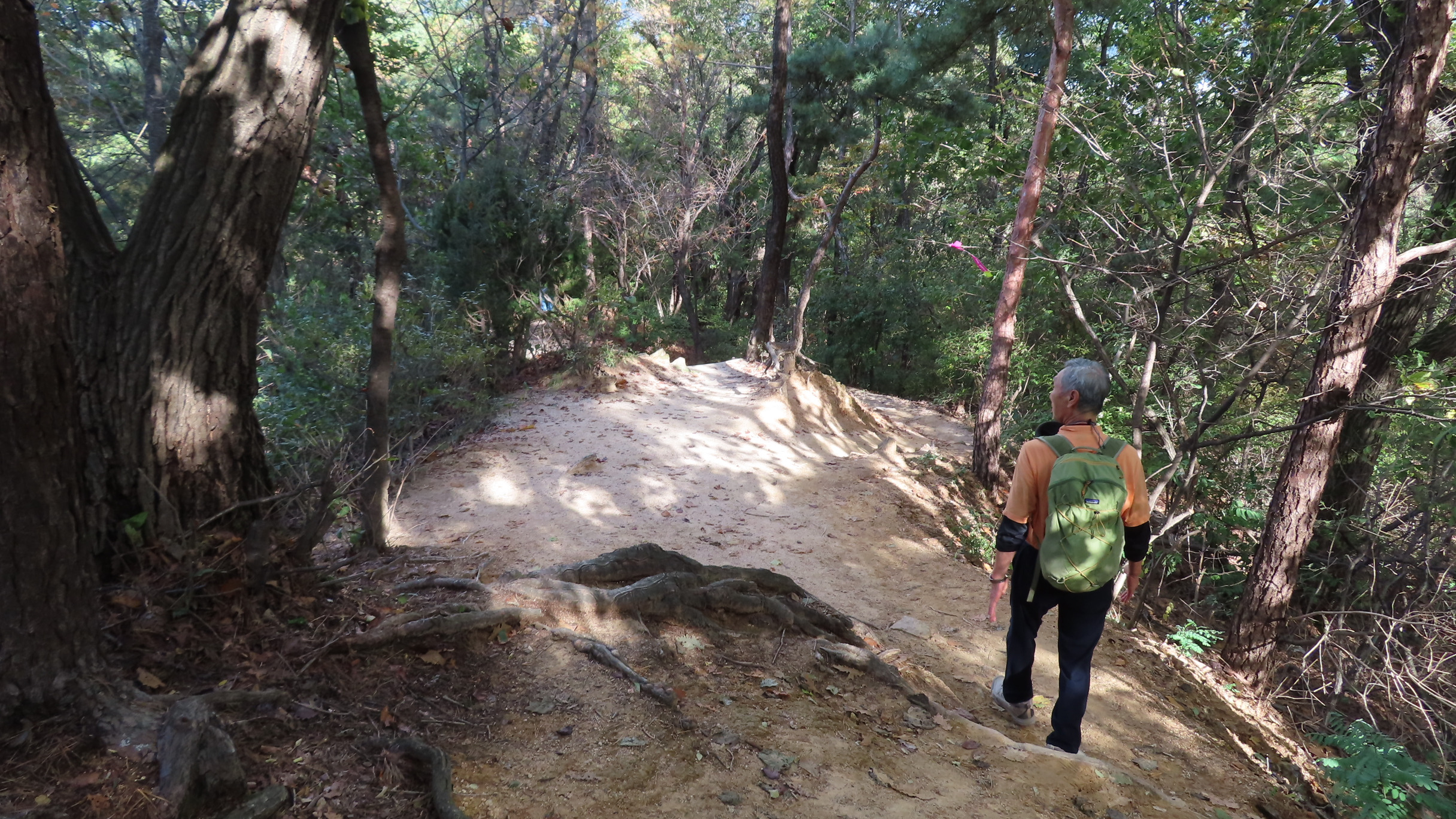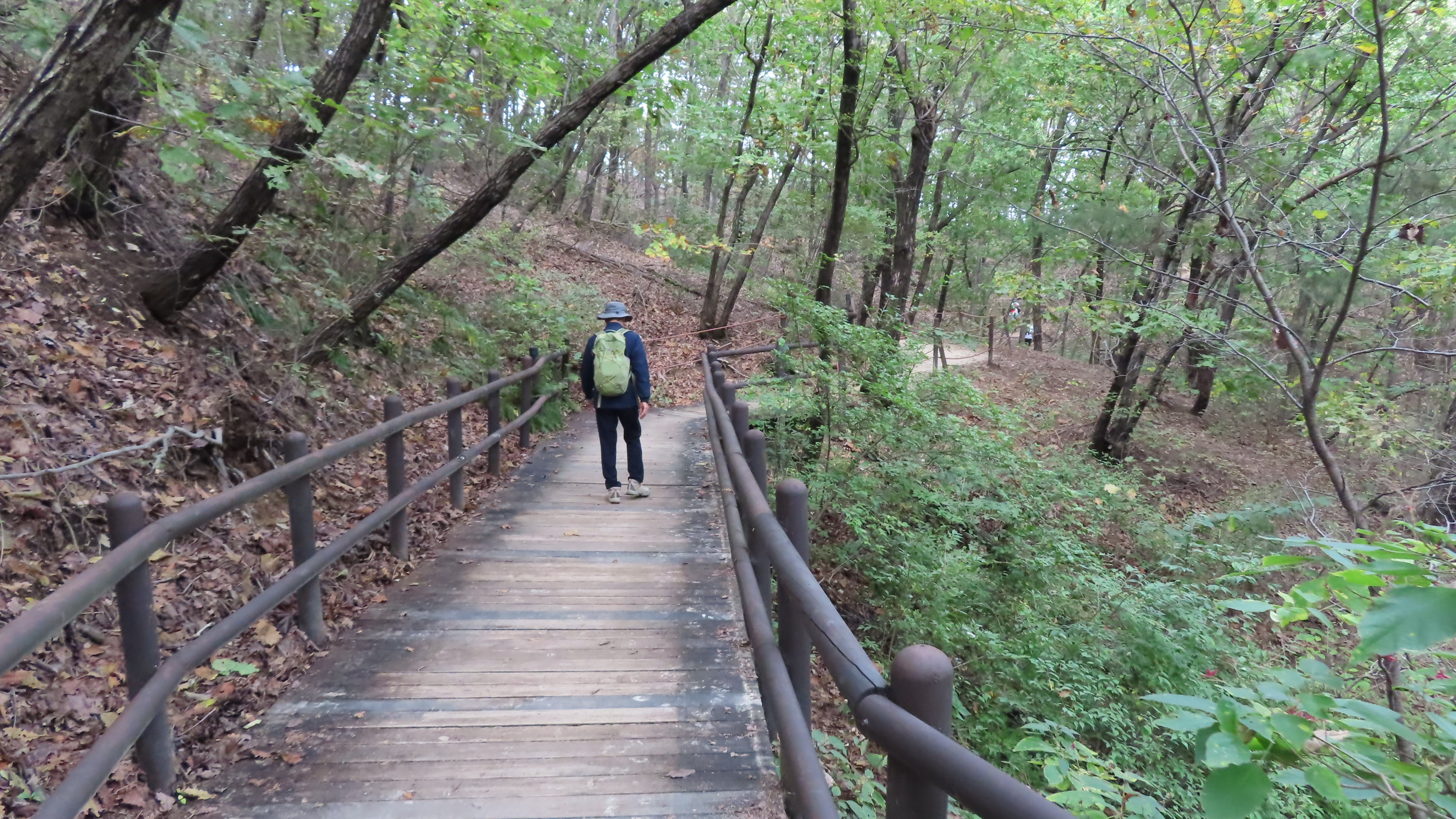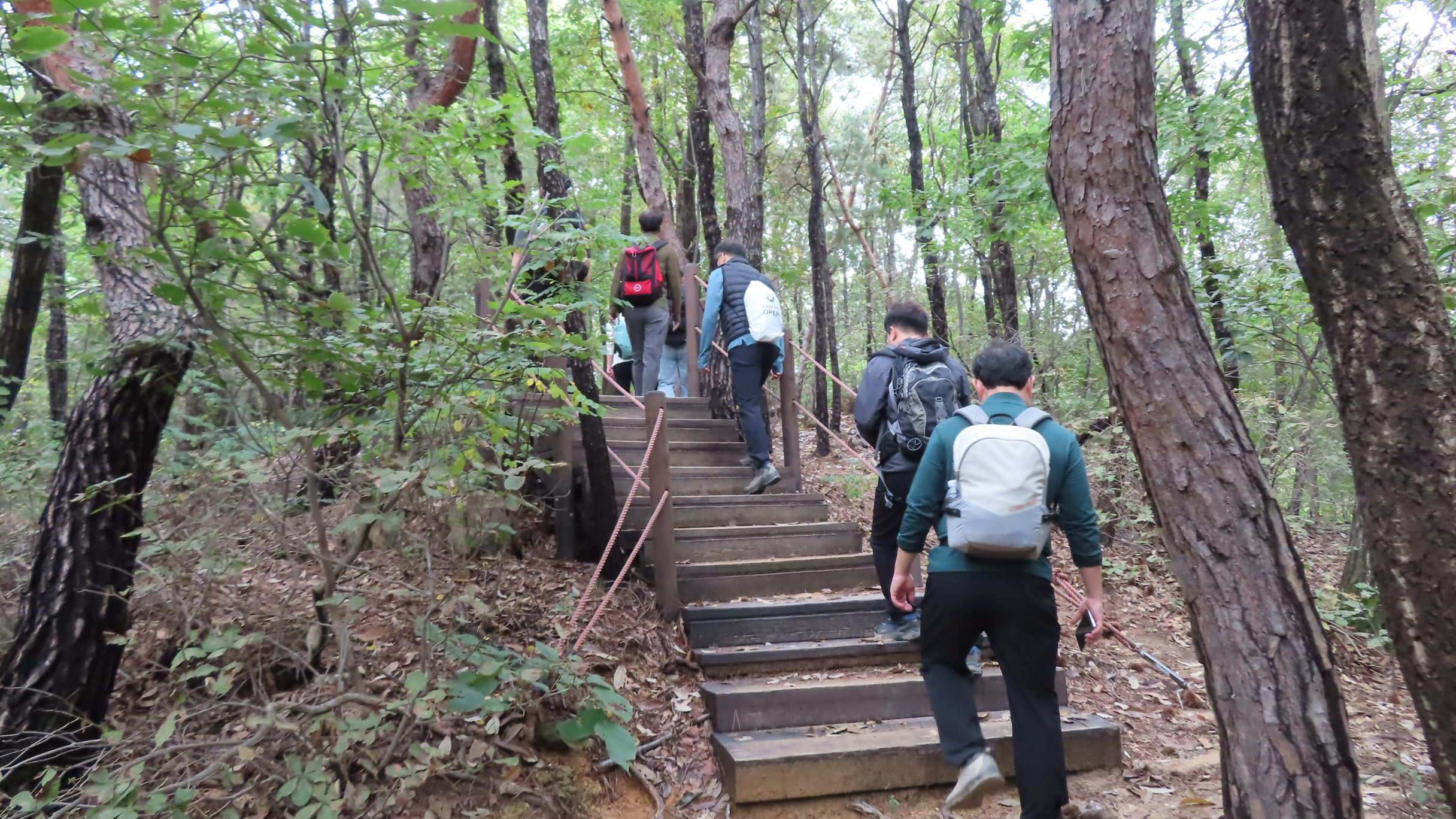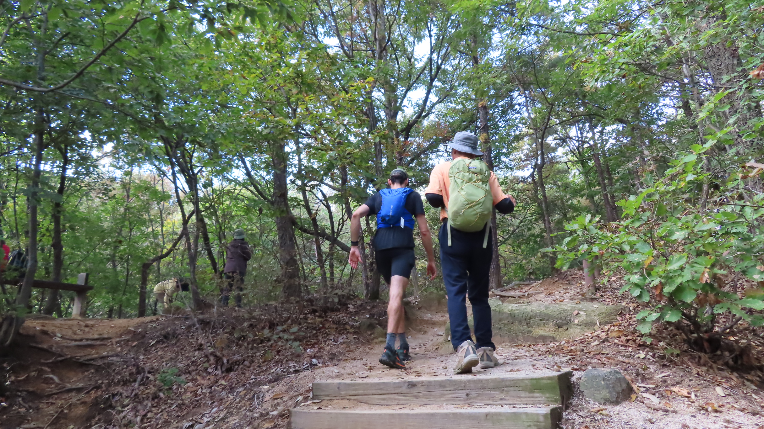 오르막길이 끝나면서 좌측으로 우이암을 올려다 볼 수 있는 쉼터가 있지만 우측으로 이어간다. 곧바로 좌측으로 내리막 계단길이다.