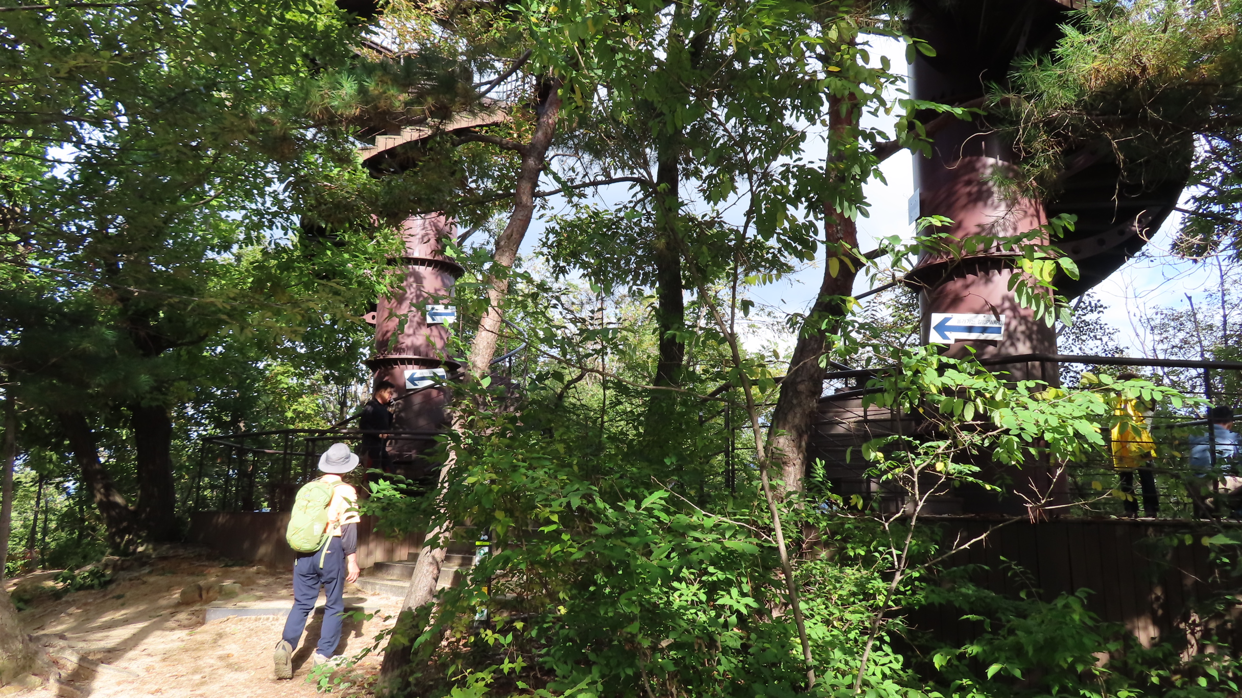 오르막길이 끝이 날 것 같던 방학동길이 내리막길로 바뀌고 이어 서울둘레길 최고의 명소 중 하나로 꼽히는 쌍둥이전망대를 오른다. 쌍둥이전망대는 두 개의 기둥을 연결한 특이한 생김새다.