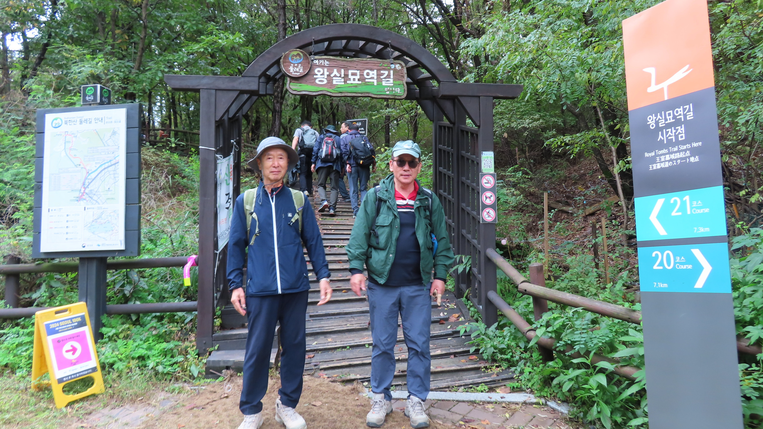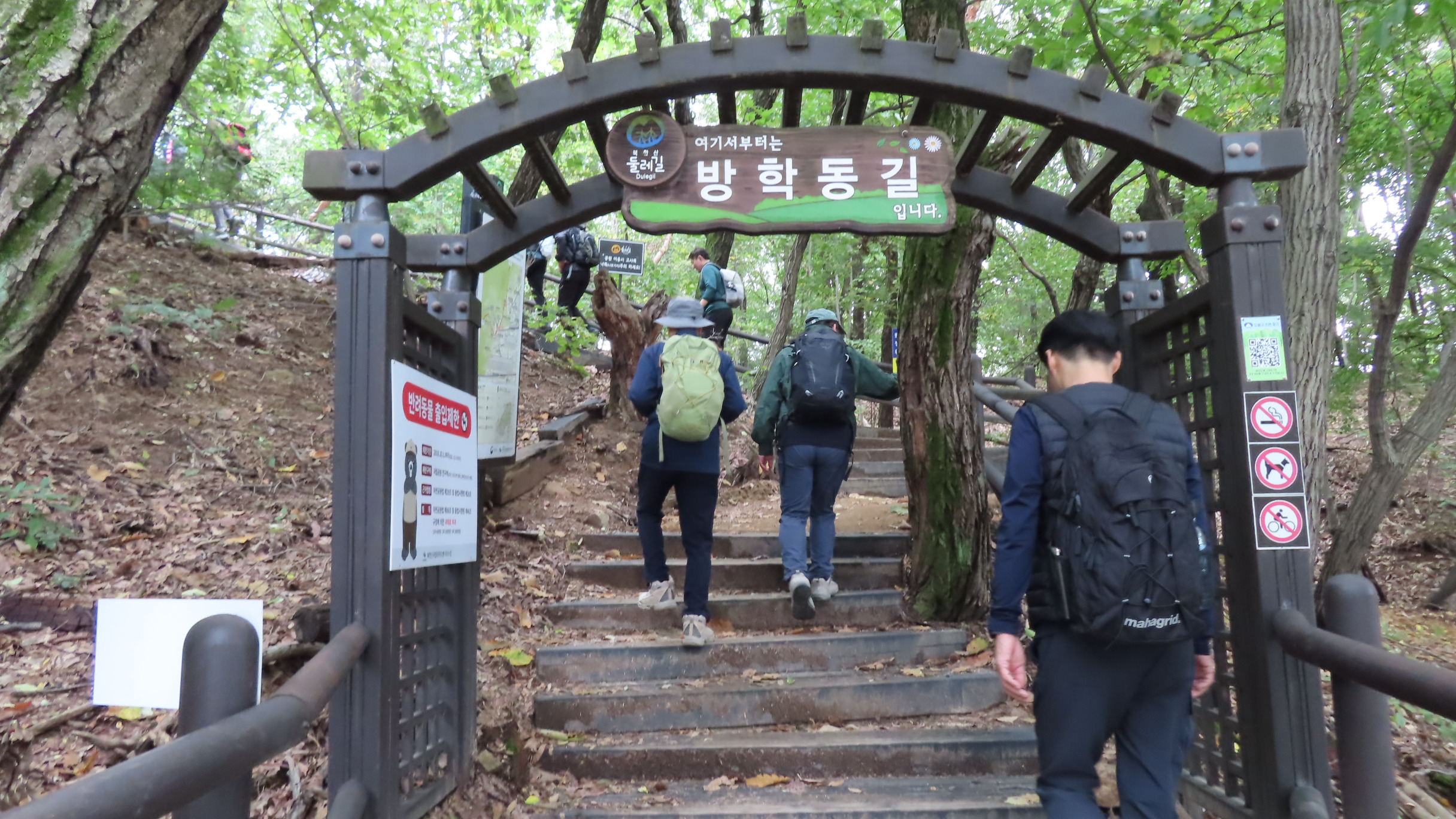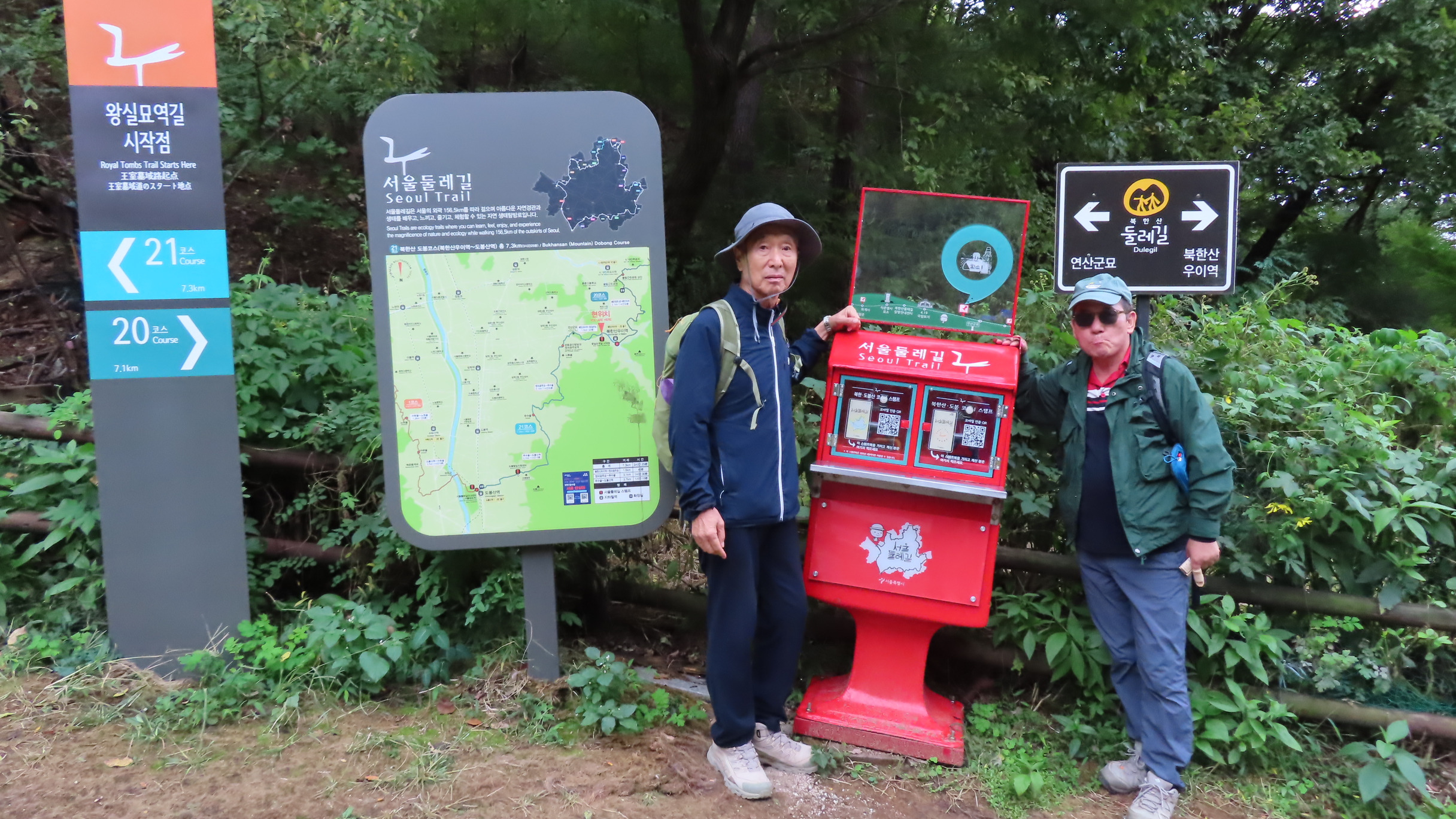 북한산우이역을 들머리로 21코스 북한산 도봉코스는 우이동 고개 왕실묘역길 아치 파고라 우측에 있는 27번째 스탬프를 찍고 시작한다. 나무 계단을 오르면서 서울둘레길 2.0 마지막 코스를 시작한다.