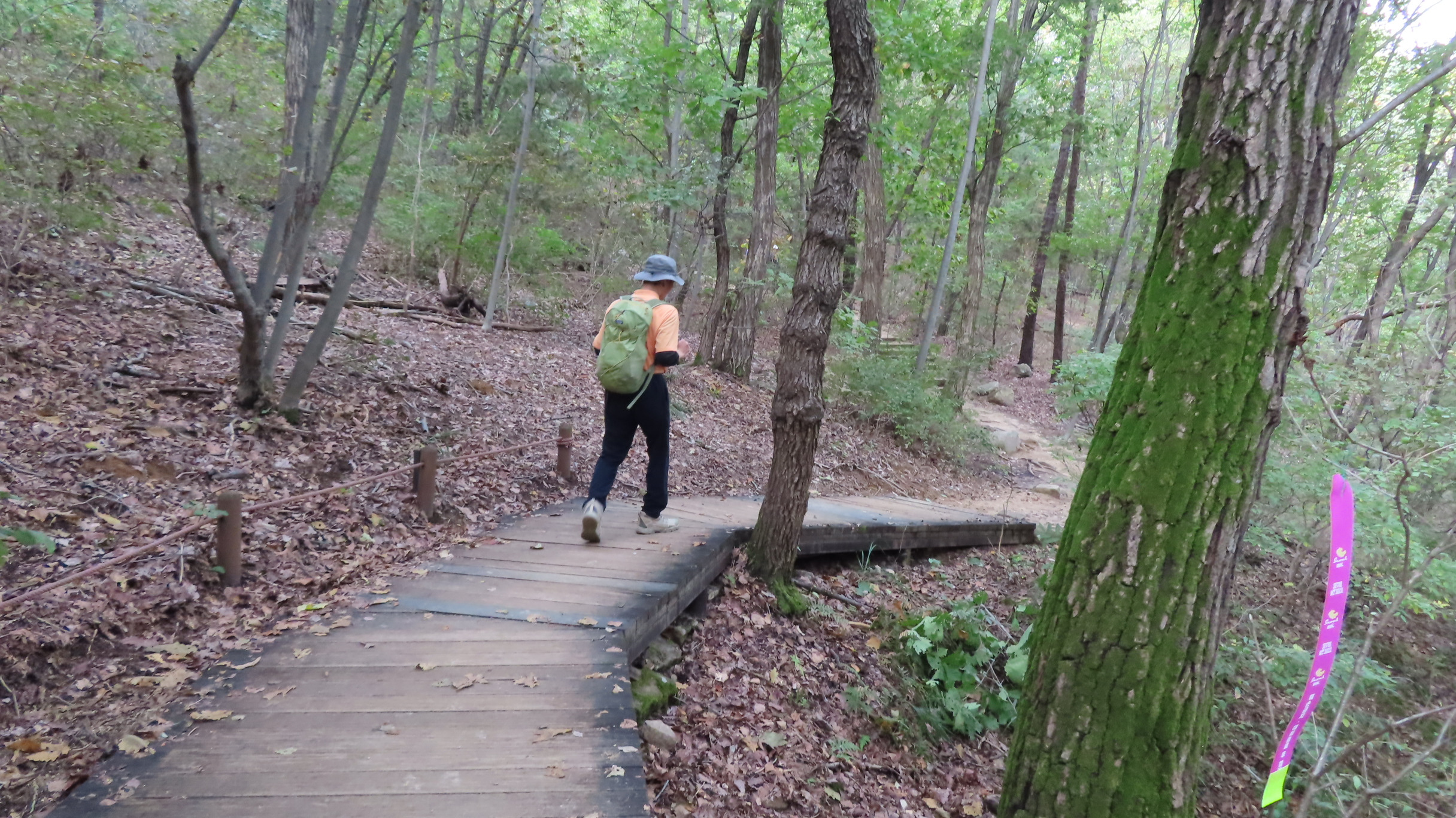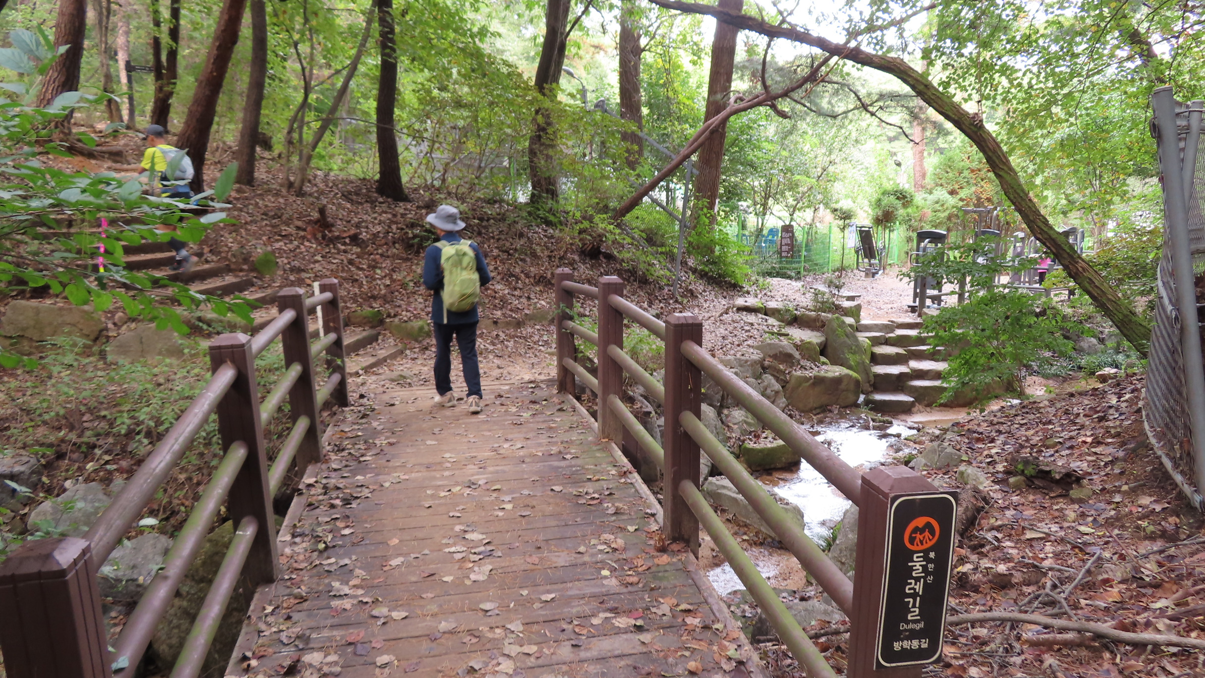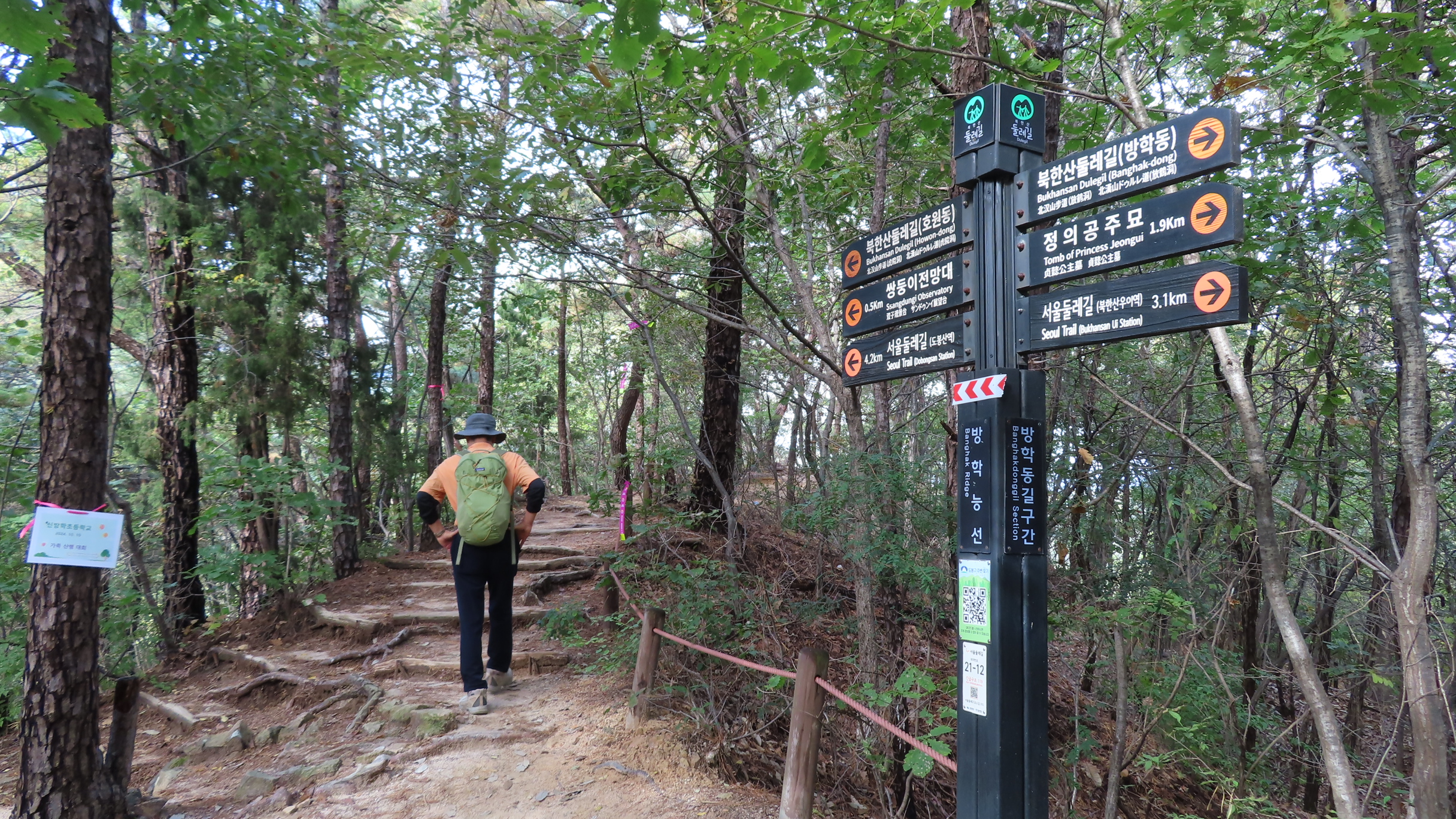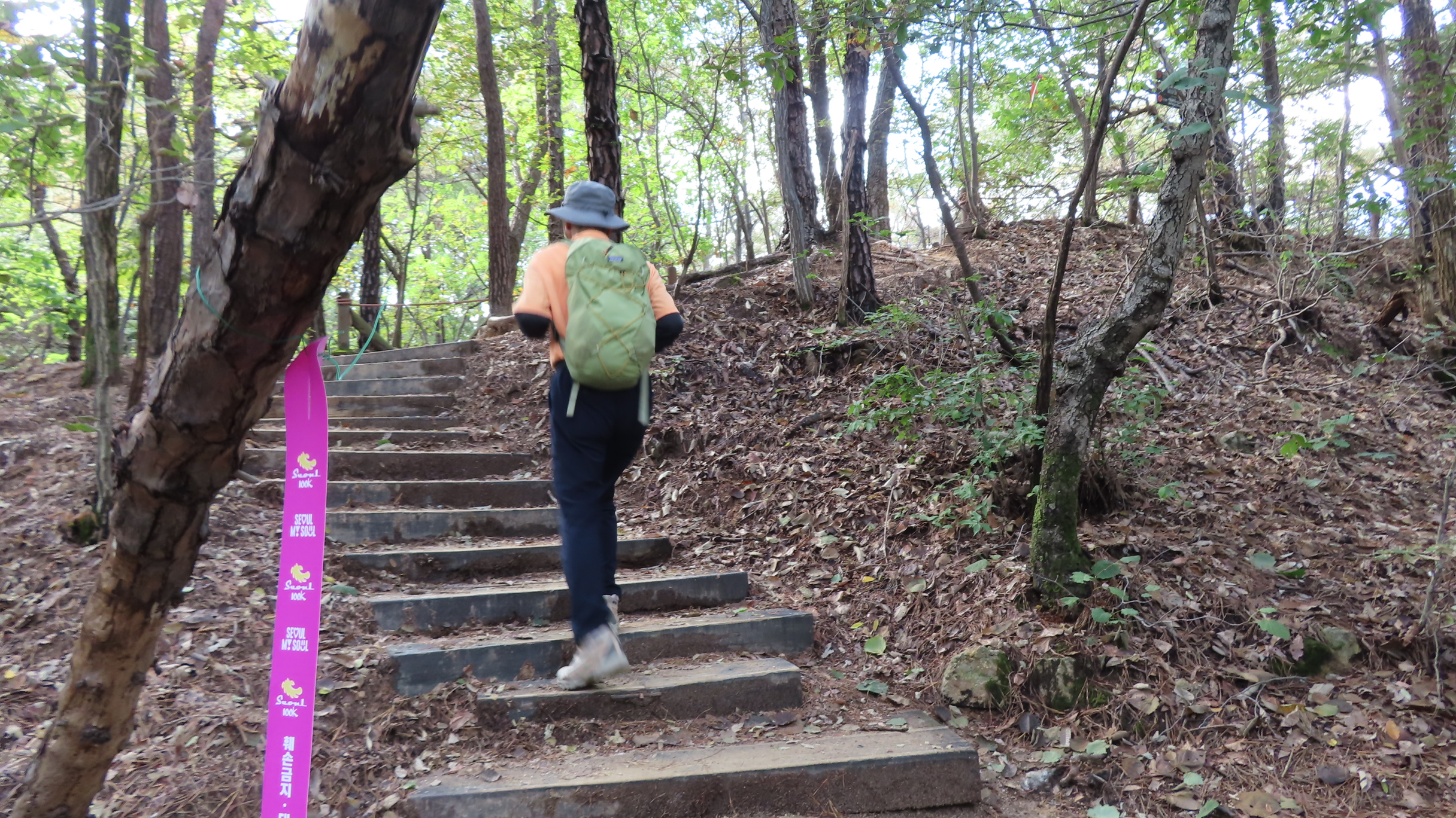 북한산우이역을 들머리로 21코스 북한산 도봉코스는 우이동 고개 왕실묘역길 아치 파고라 우측에 있는 27번째 스탬프를 찍고 시작한다. 나무 계단을 오르면서 서울둘레길 2.0 마지막 코스를 시작한다.