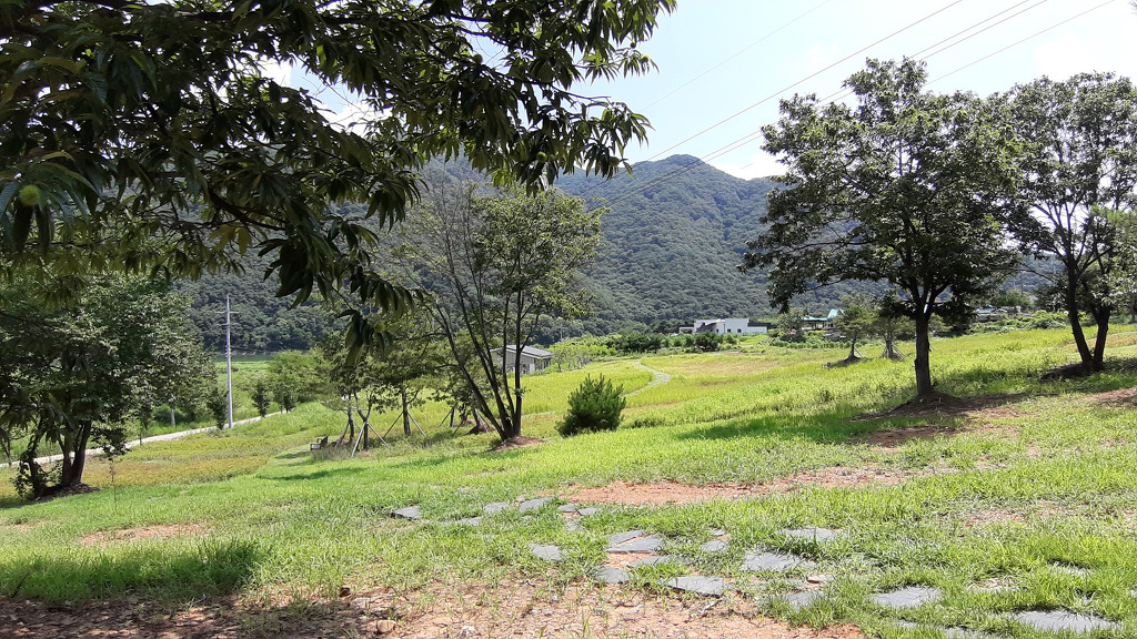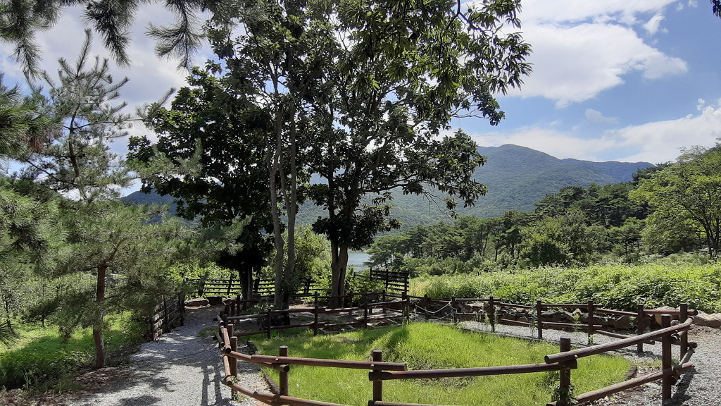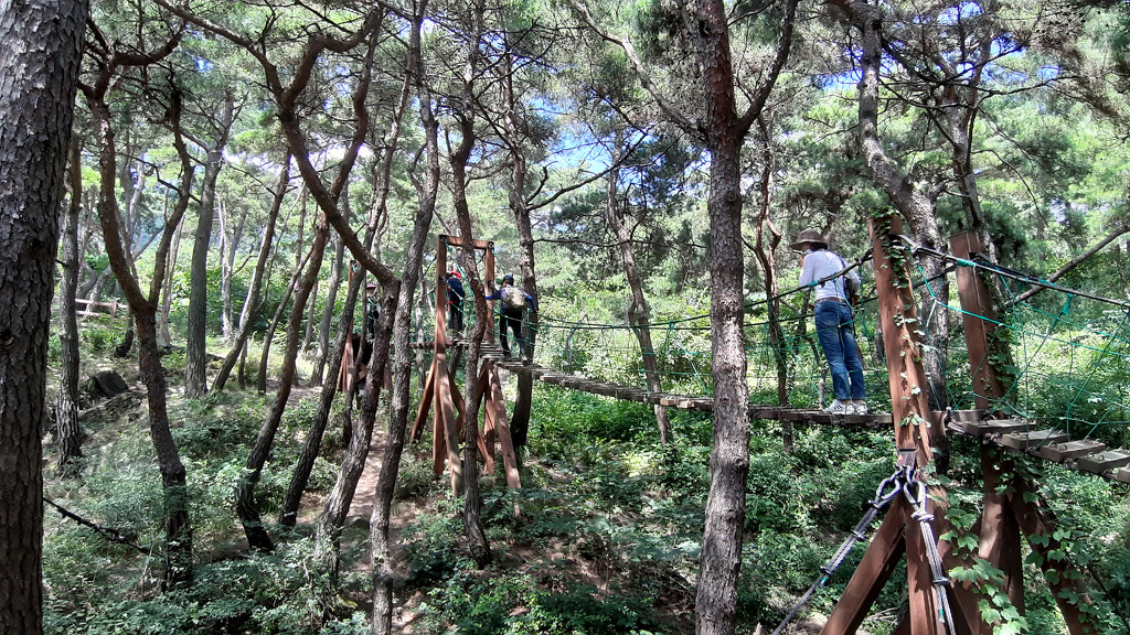 통나무 입구와 출렁다리가 새로 놓여 있군요.
