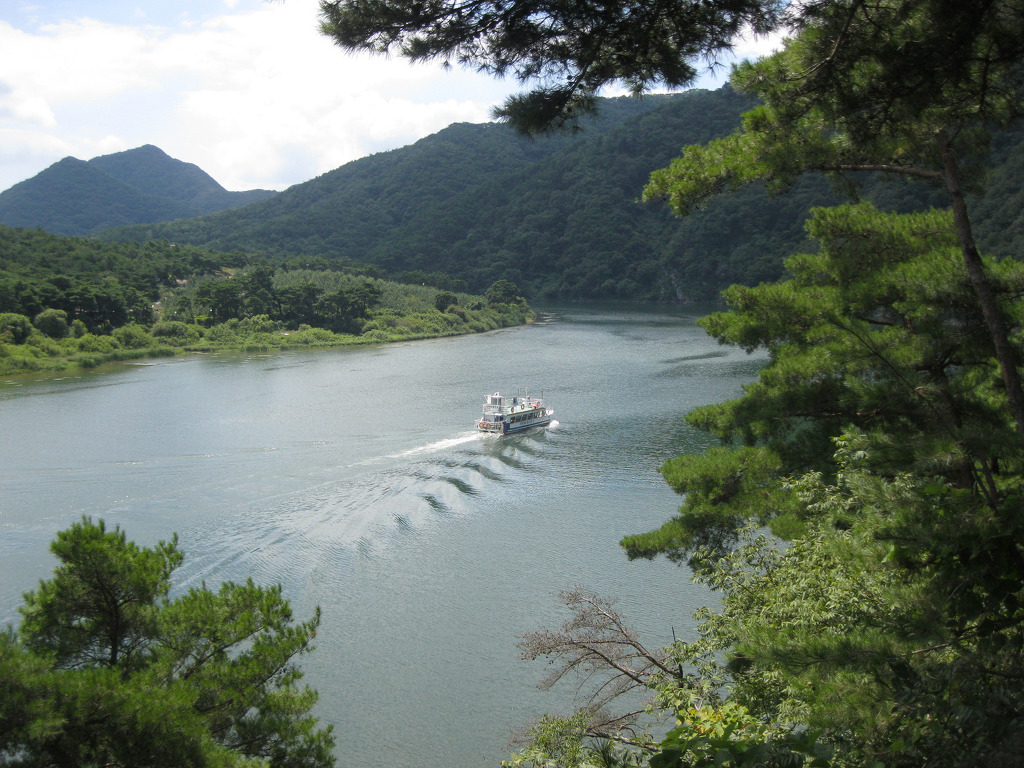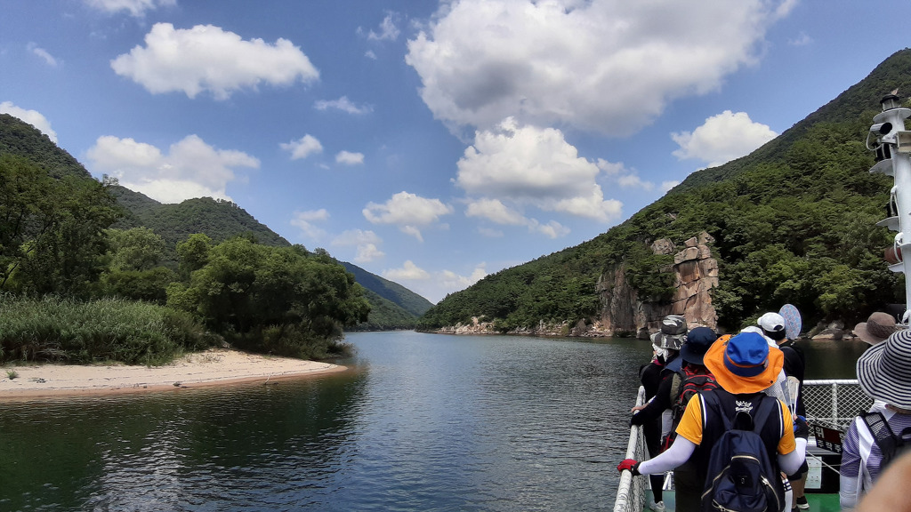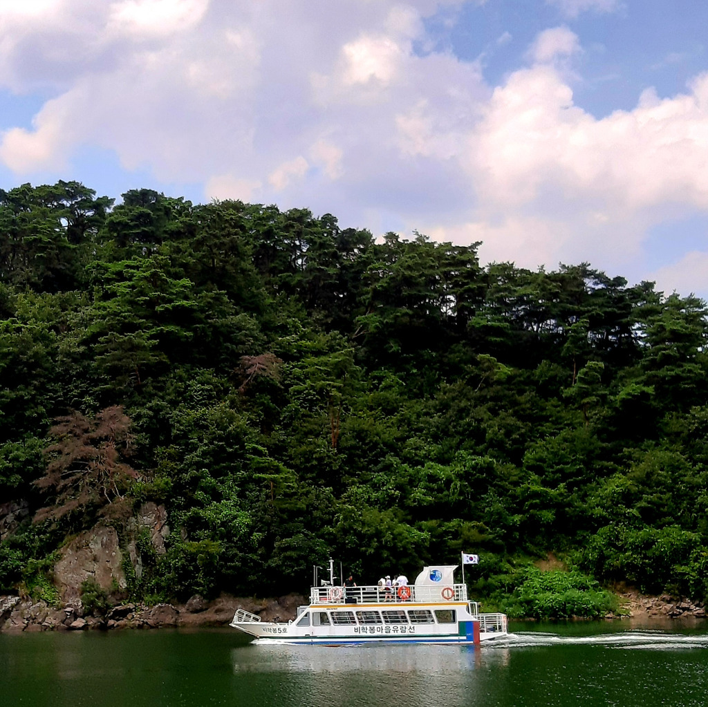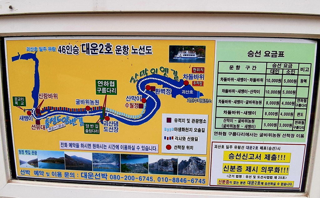 유람선으로 괴산호수(괴산댐)를 돌아 들머리로 회귀